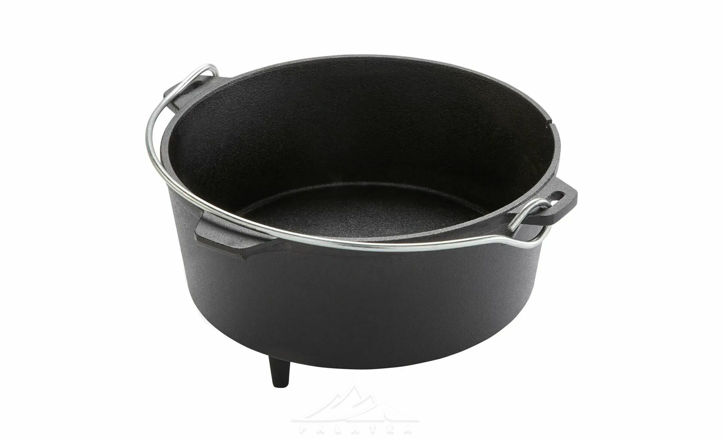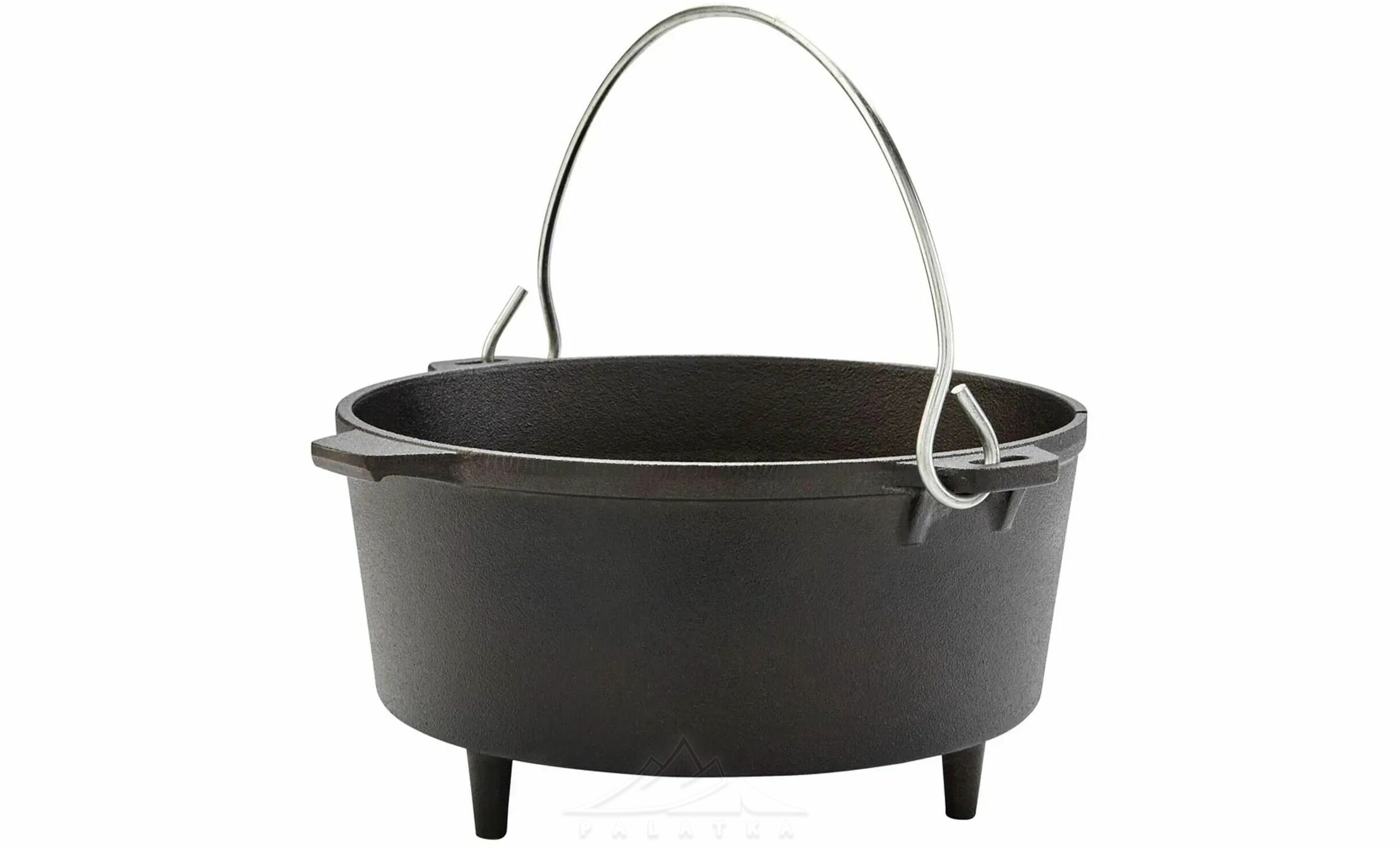 • Бічні невеликі литі ручки з чавуну для зручного перенесення, та велика міцна сталева ручка, яка дозволяє підвішувати казан над вогнищем чи закріпити його на тринозі.