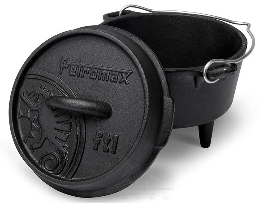 Казан-жаровня Petromax Dutch Oven — чавуний казанок з ніжками, для приготування їжі на вугіллі, плиті, духовці, або над багаттям. Підходить для випічки, десертів і приготування соусів.