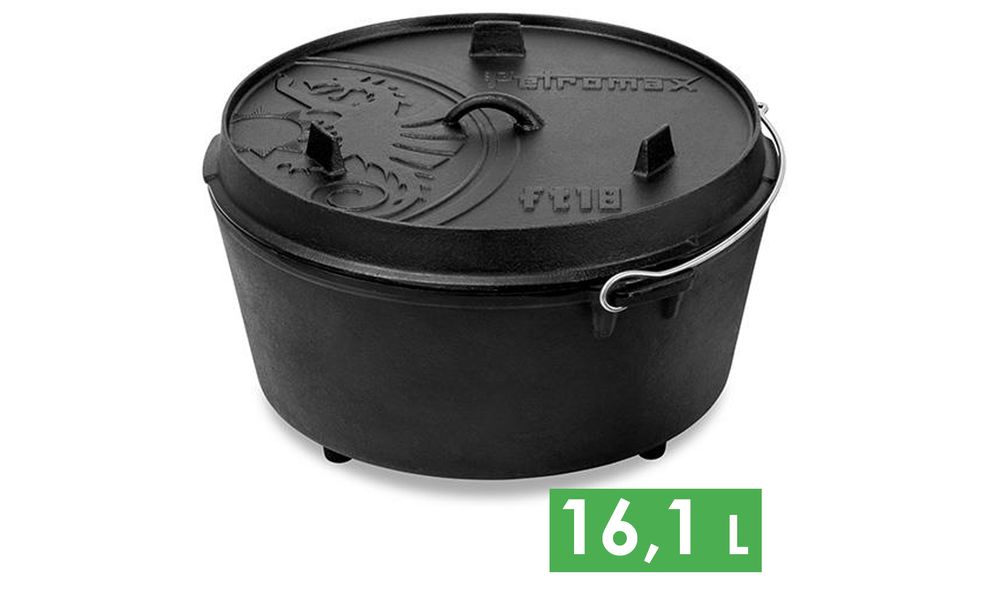 Казан-жаровня Petromax Dutch Oven — чавуний казанок з ніжками 2 в 1, для приготування їжі на вугіллі, плиті, духовці, або над багаттям. Підходить для випічки, десертів і приготування соусів.