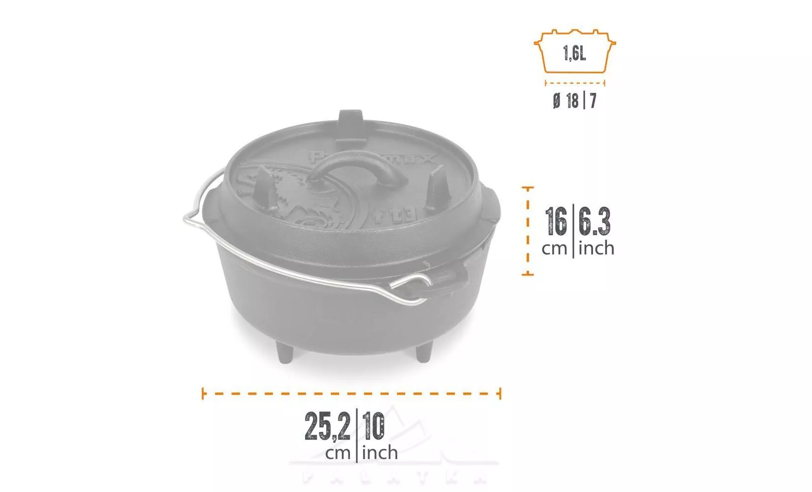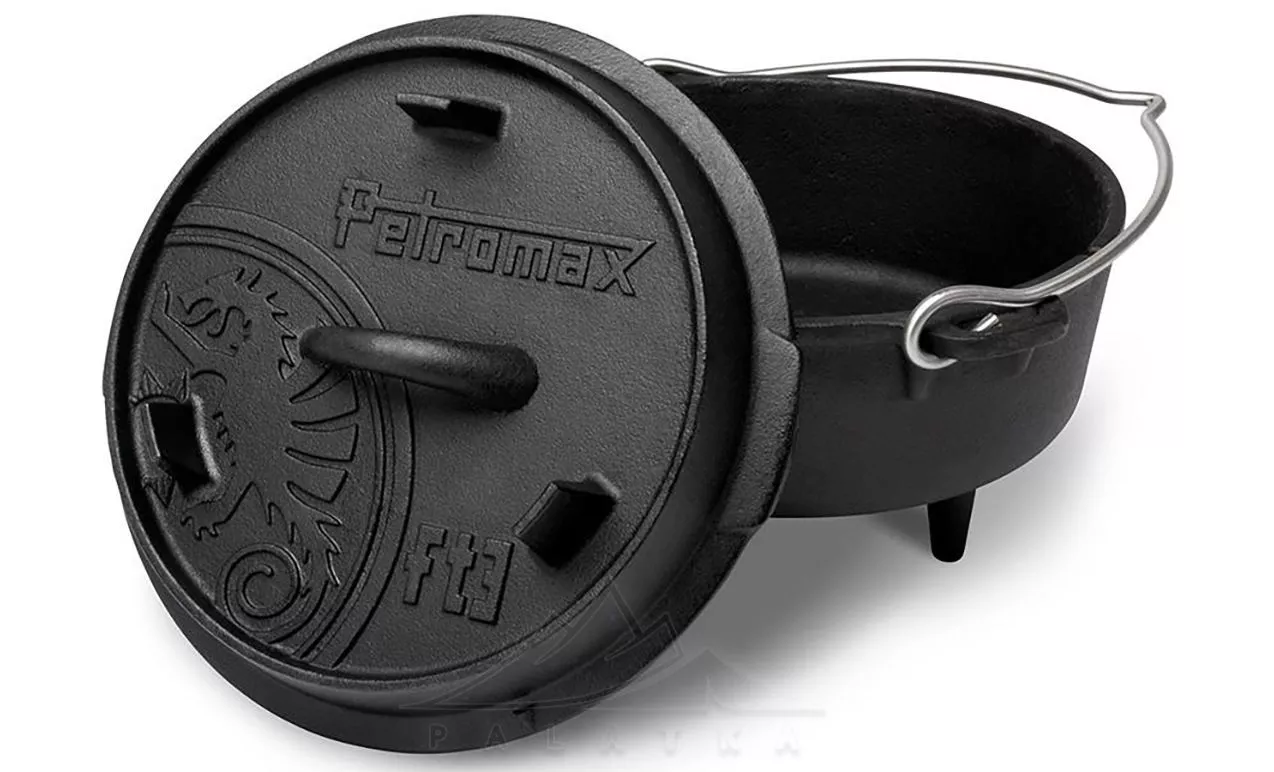 Казан-жаровня Petromax Dutch Oven — чавуний казанок з ніжками 2 в 1, для приготування їжі на вугіллі, плиті, духовці, або над багаттям. Підходить для випічки, десертів і приготування соусів.
