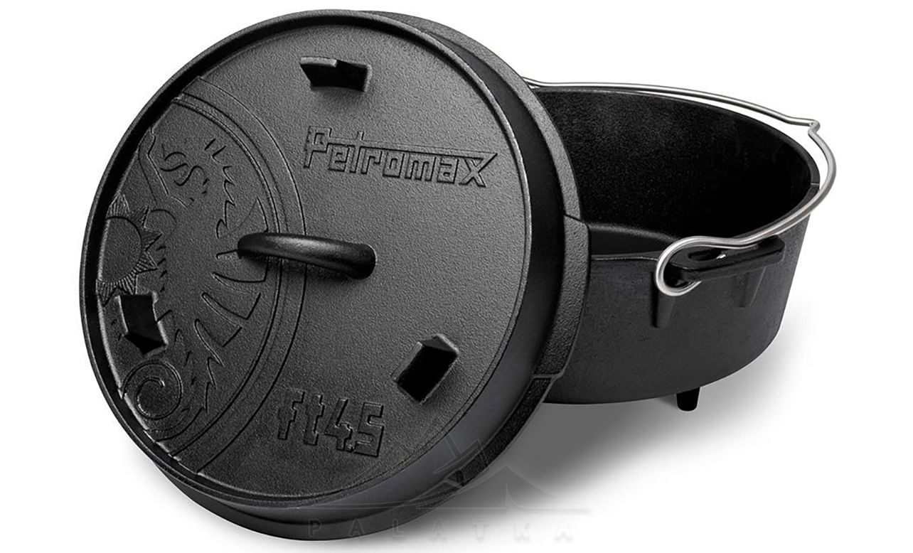 Казан-жаровня Petromax Dutch Oven — чавуний казанок з ніжками 2 в 1, для приготування їжі на вугіллі, плиті, духовці, або над багаттям. Підходить для випічки, десертів і приготування соусів.