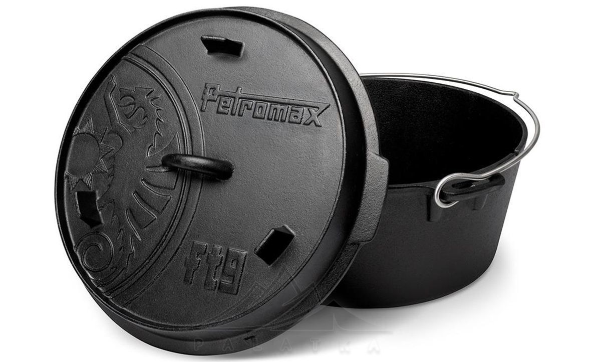 Казан-жаровня Petromax Dutch Oven — чавуний казанок 2 в 1, для приготування їжі на вугіллі, плиті, духовці, або над багаттям. Підходить для випічки, десертів і приготування соусів.