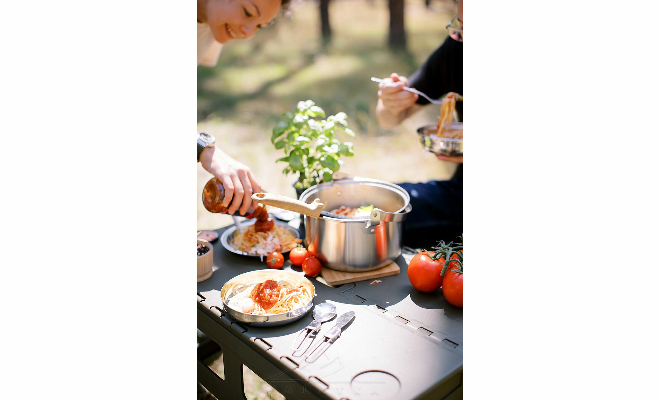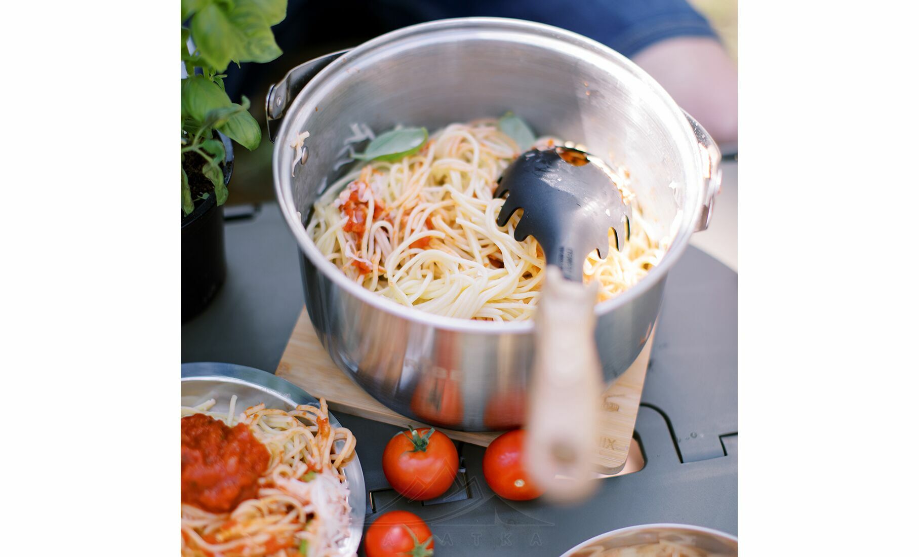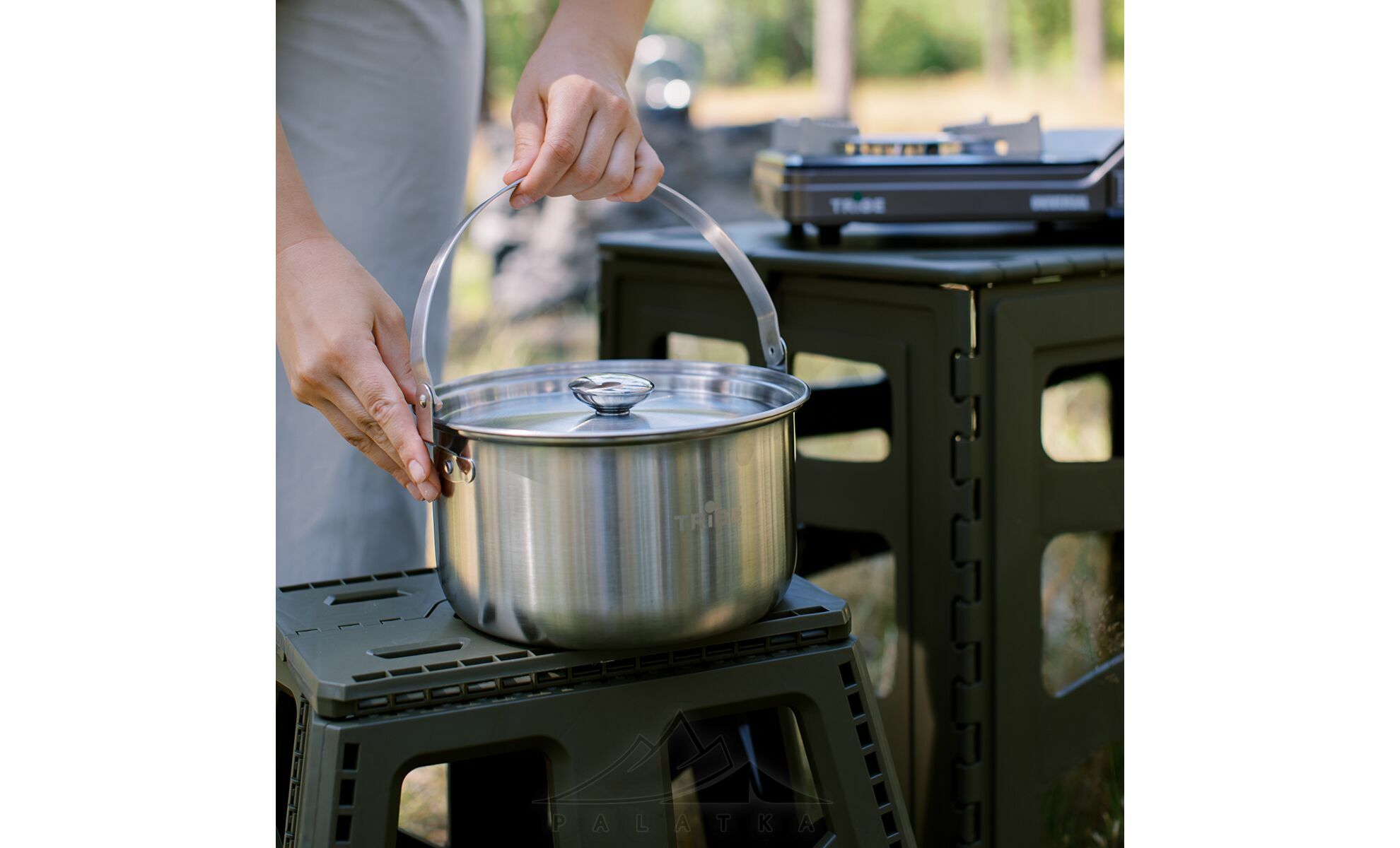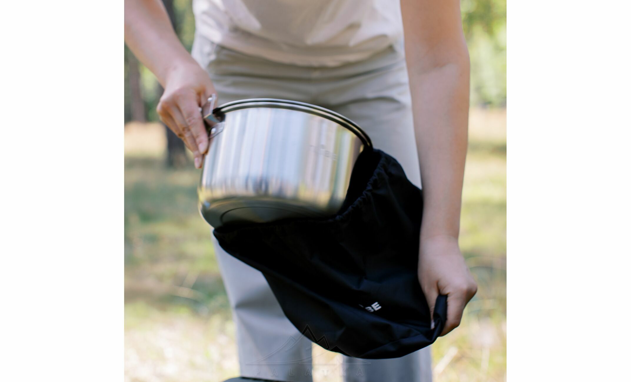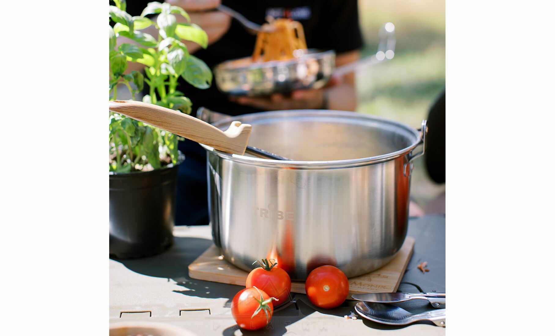 Tribe T-FH-0005 Family Pot — це універсальний казанок з харчової нержавіючої сталі, створений для приготування їжі на природі: у походах, кемпінгу чи на пікніку. Підходить для використання на відкритому вогні, пальнику або плиті, а зручна ручка дозволяє підвісити його над вогнищем.