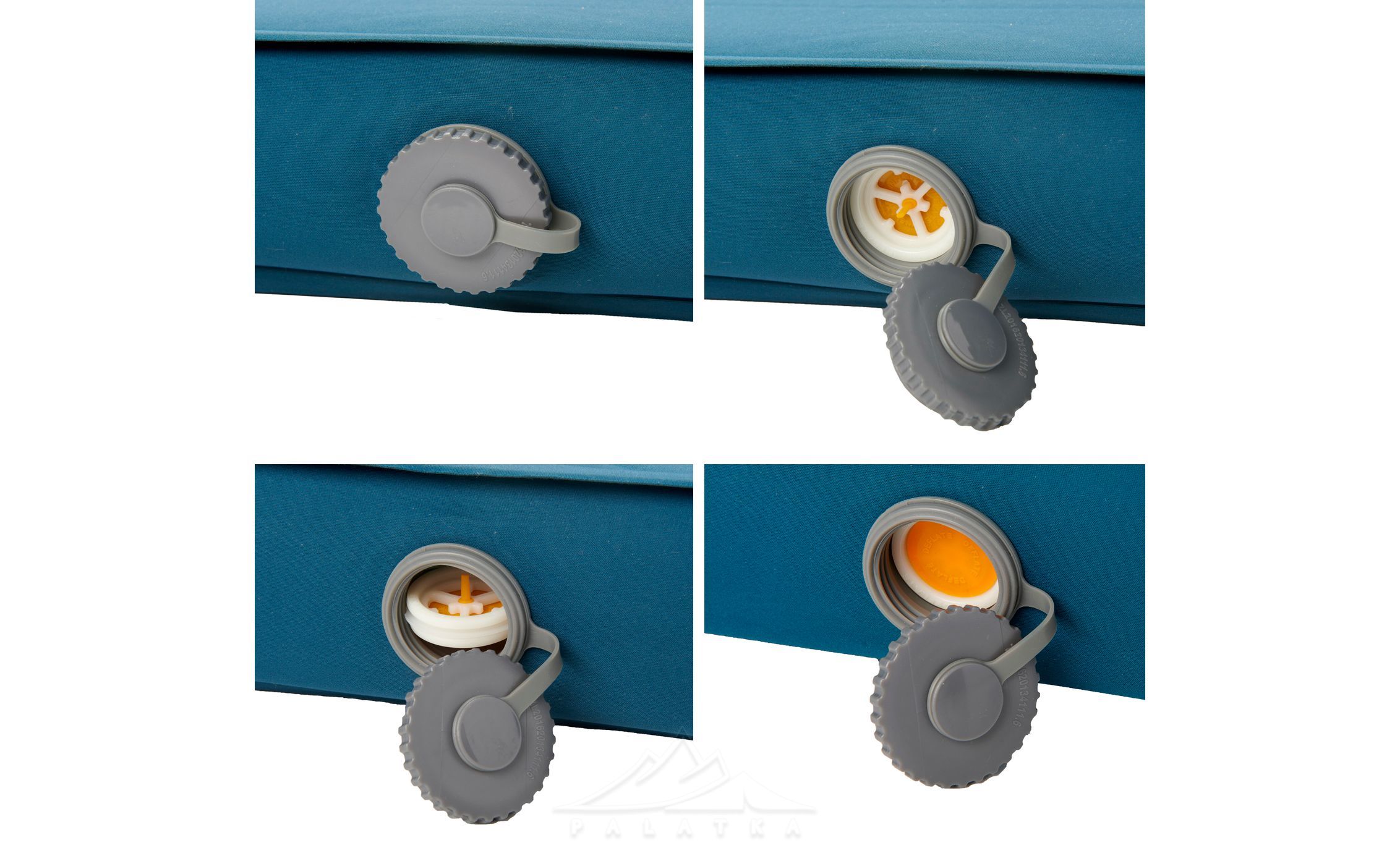 - Оснащений подвійним клапаном, який полегшує надування та здування килимка.