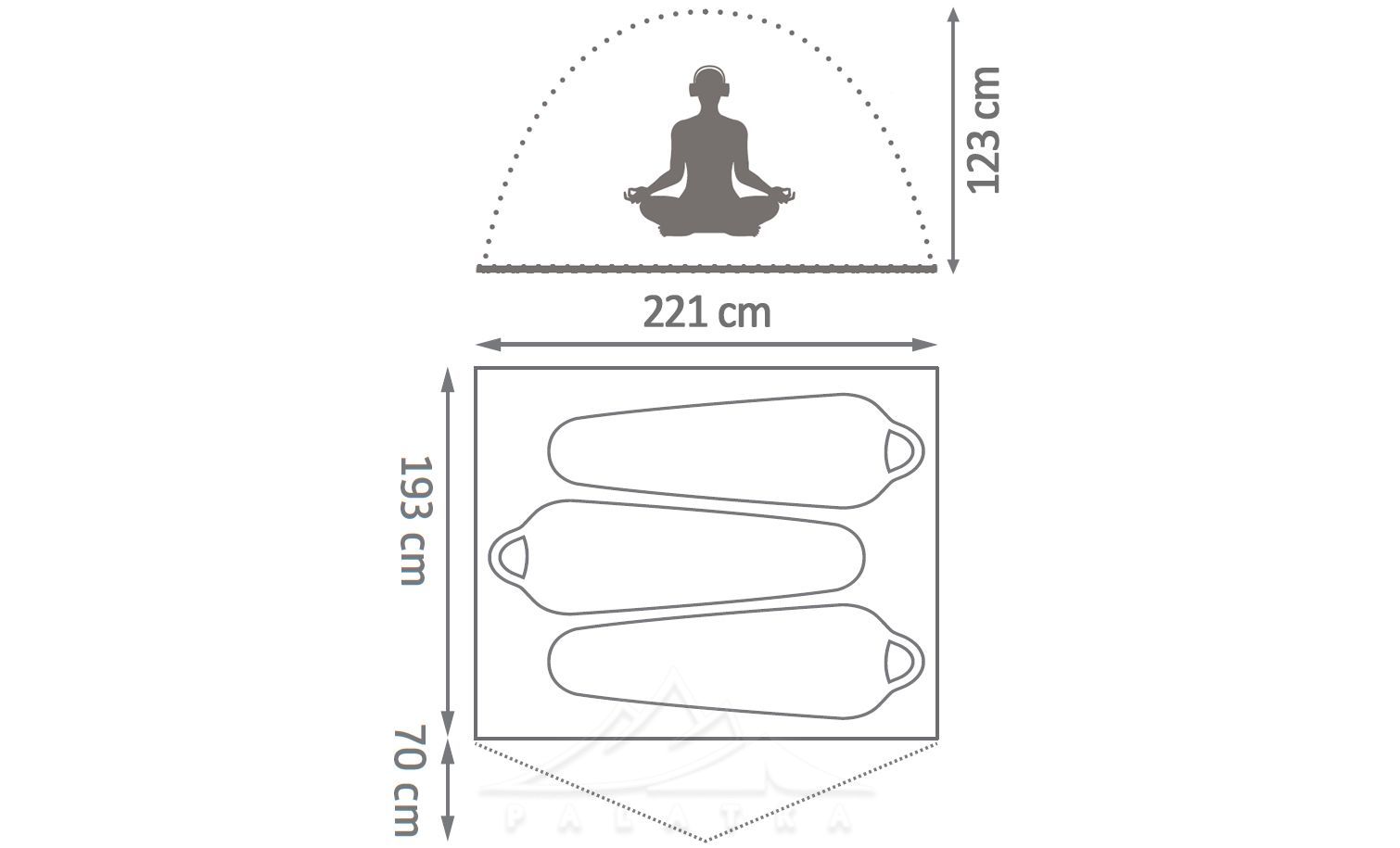 - Матеріали: зовнішній водостійкий тент та дно внутрішньої спальні забезпечить ваш надійний захист від опадів. Стінки спальні з дрібної москітної сітки для кращої вентиляції та захисту від комах.