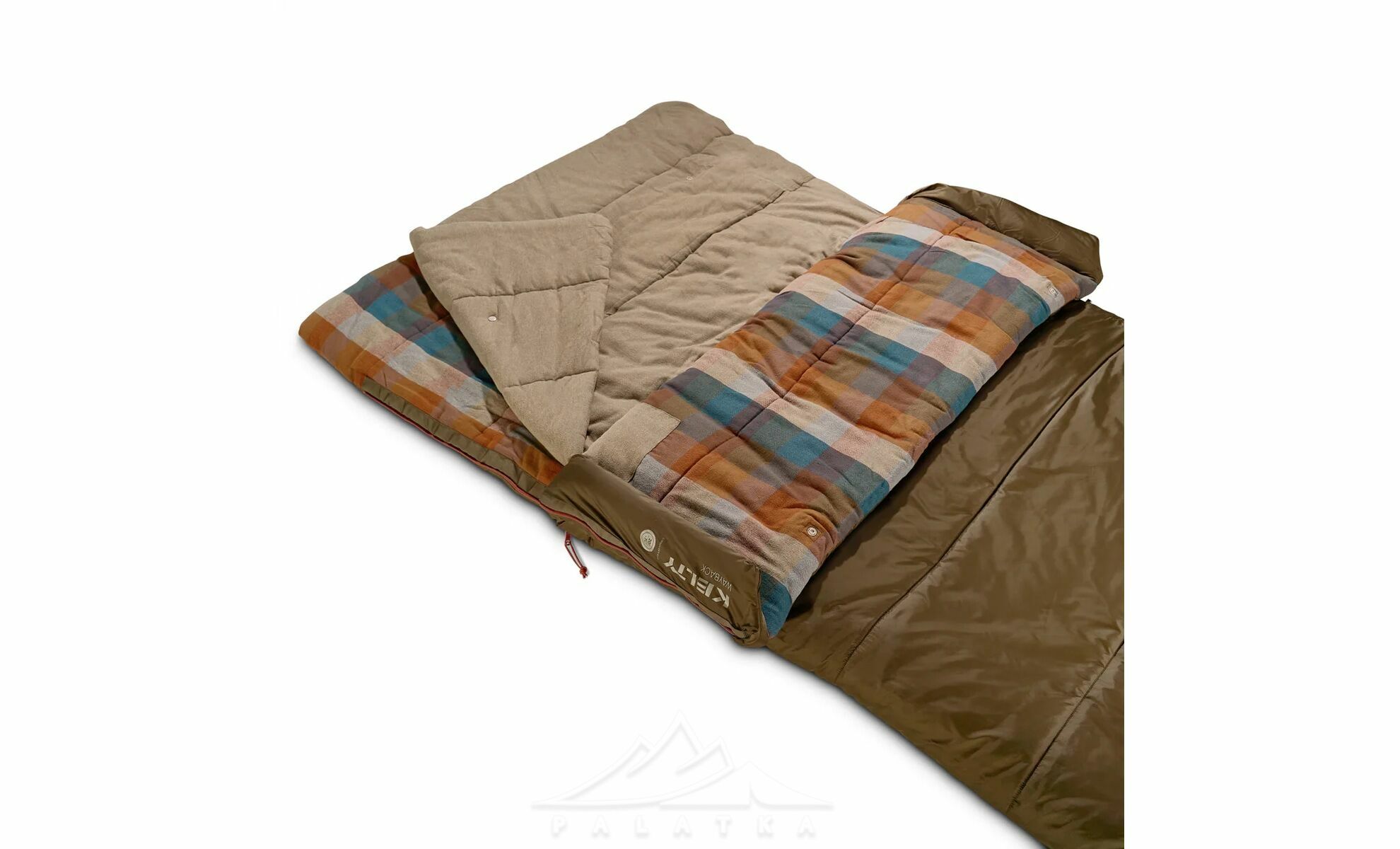- М’яка фланелева підкладка з бавовни дає приємніше, більш домашнє відчуття під час сну, тому спальник особливо комфортний саме для кемпінгу, а не для жорсткого легкоходного формату.