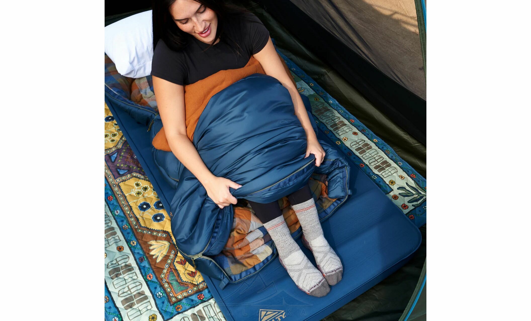 - Зовнішня тканина з нейлону ripstop краще підходить для регулярного використання в таборі і додає спальнику практичності в поїздках.