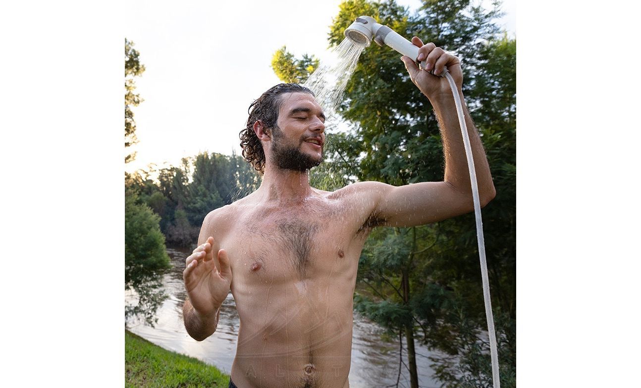 Кемпінговий душ Naturehike NH20SJ018 Vehicle-Mounted Shower — портативний акумуляторний пристрій, який замінить ножний насос для вашого душу або гравітаційний сонячний душ.