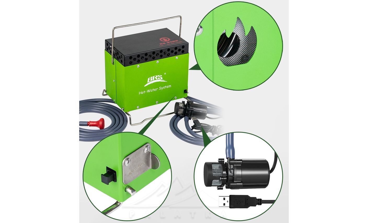 BRS-93 — портативний кемпінговий душ з газовим нагрівачем води. З цим набором у вас завжди буде можливість прийняти теплий душ навіть коли погода не сприяє прогріву води.