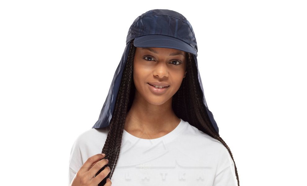 В серії кепок BUFF® Pack Sakhara широкий козирок добре прикриває від шкідливого ультрафіолету обличчя й очі, а довгий відворот, який знімається, — шию, виконує наступні функції: