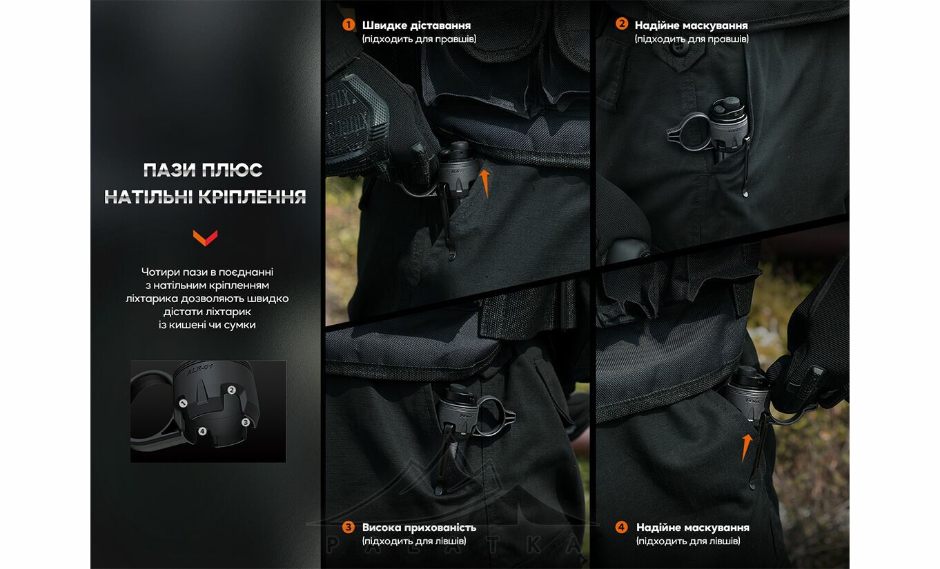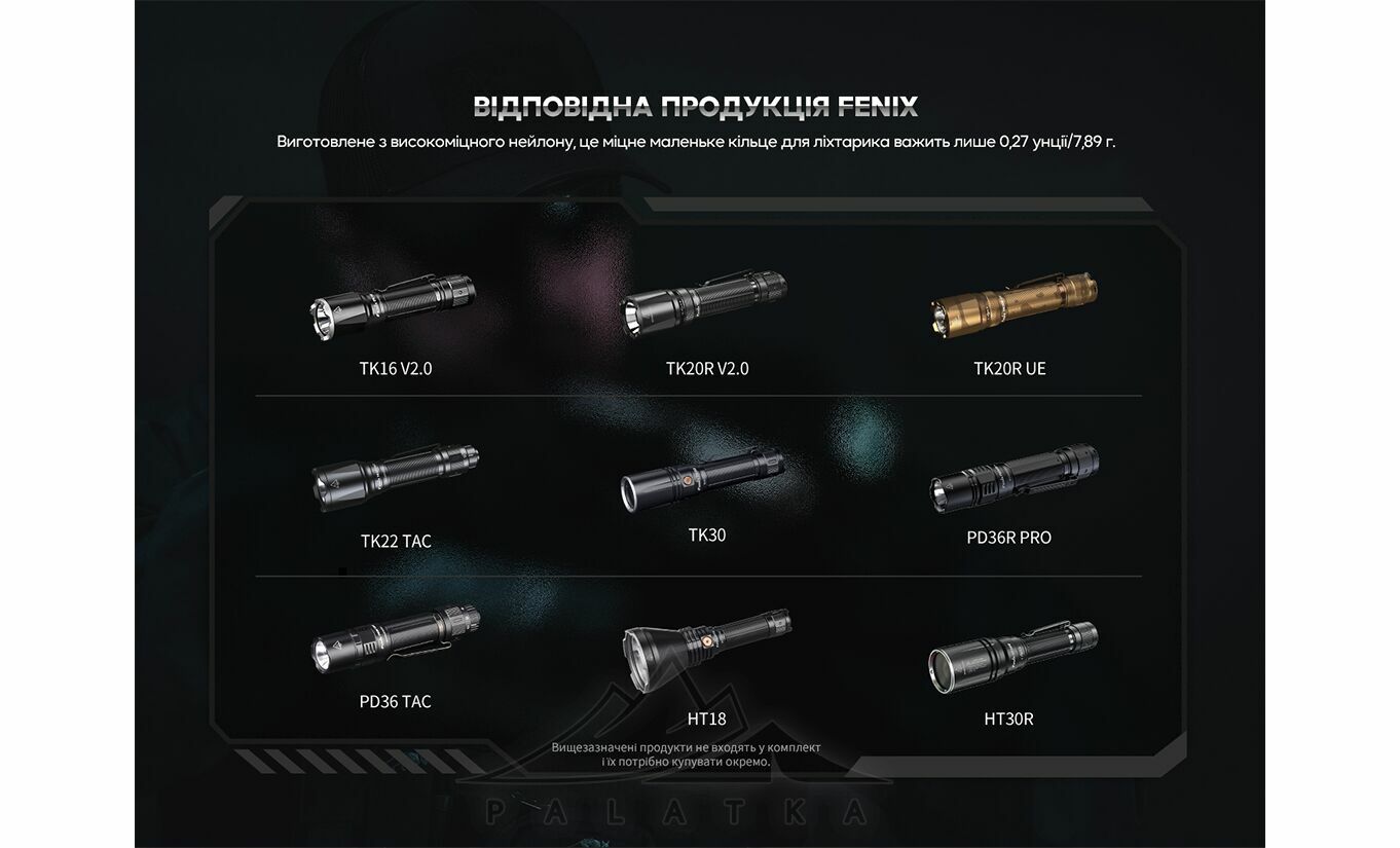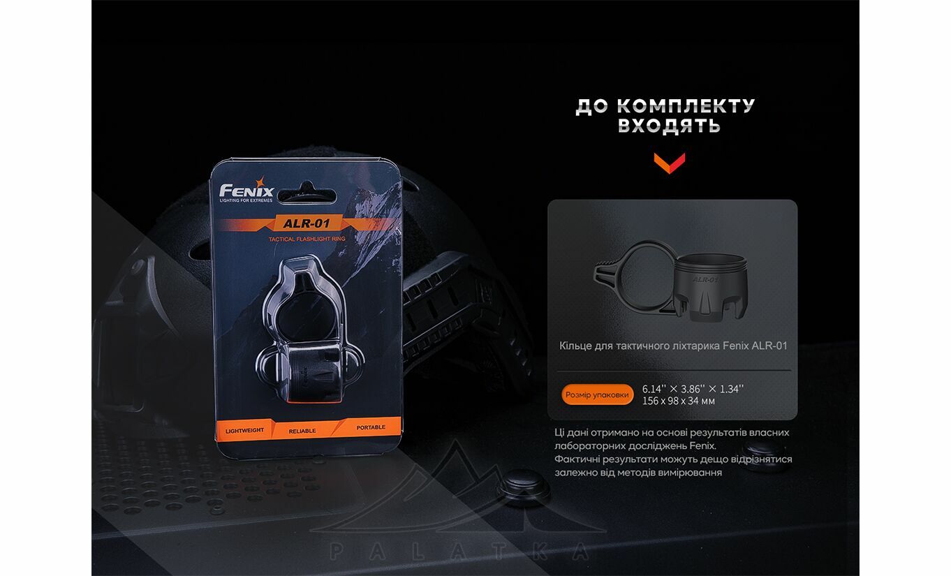 Fenix ALR-01 — кільце, призначене для різноманітних способів утримання ліхтаря, що підходить до більшості тактичних моделей Fenix.