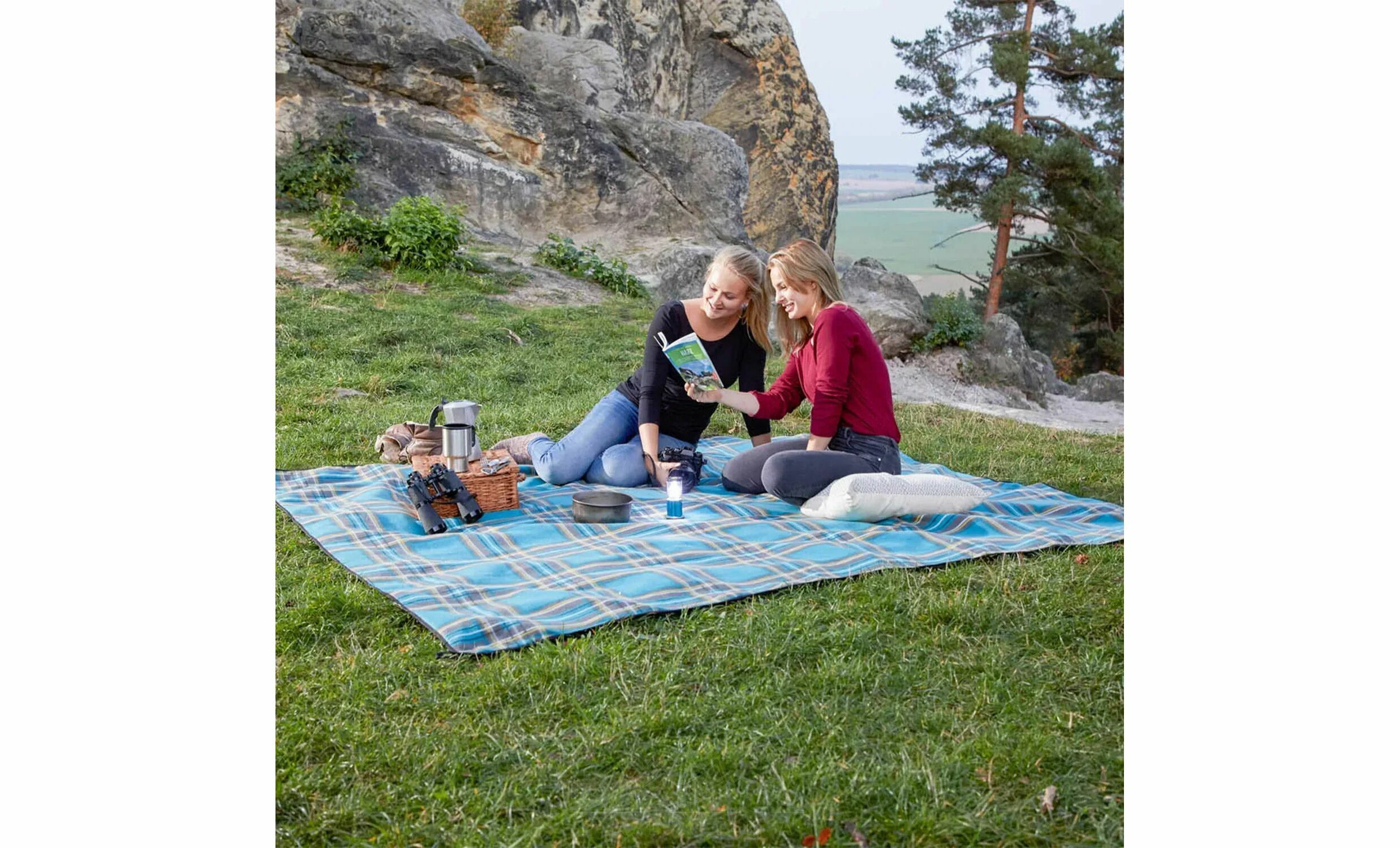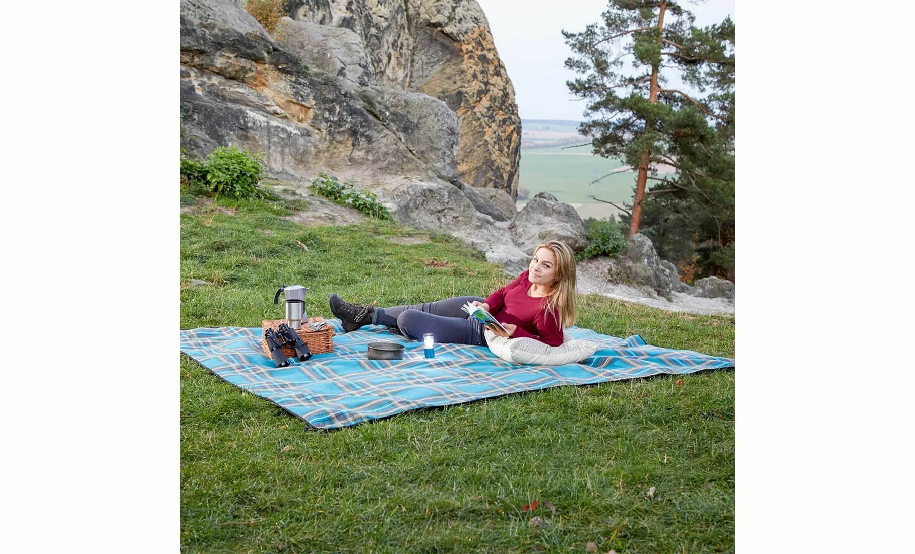 - Верхній шар із м’якого флісу робить килимок приємним у використанні, тому на ньому комфортніше сидіти або лежати під час пікніка чи відпочинку на природі