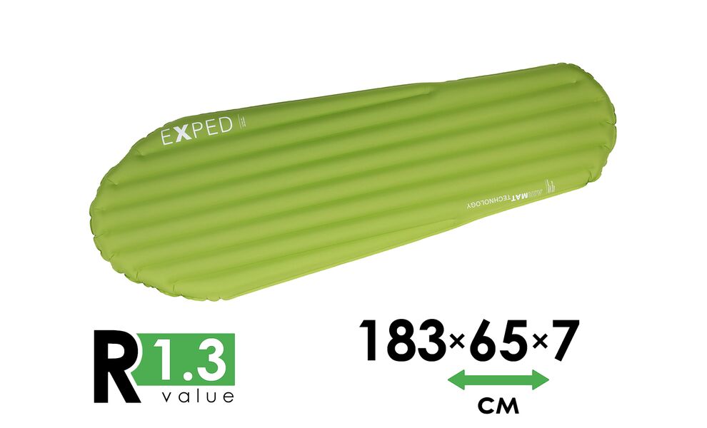- Оснащений фірмовими клапанами Exped, що полегшують процес надування та здування килимка, адже працюють тільки в одному напрямку.