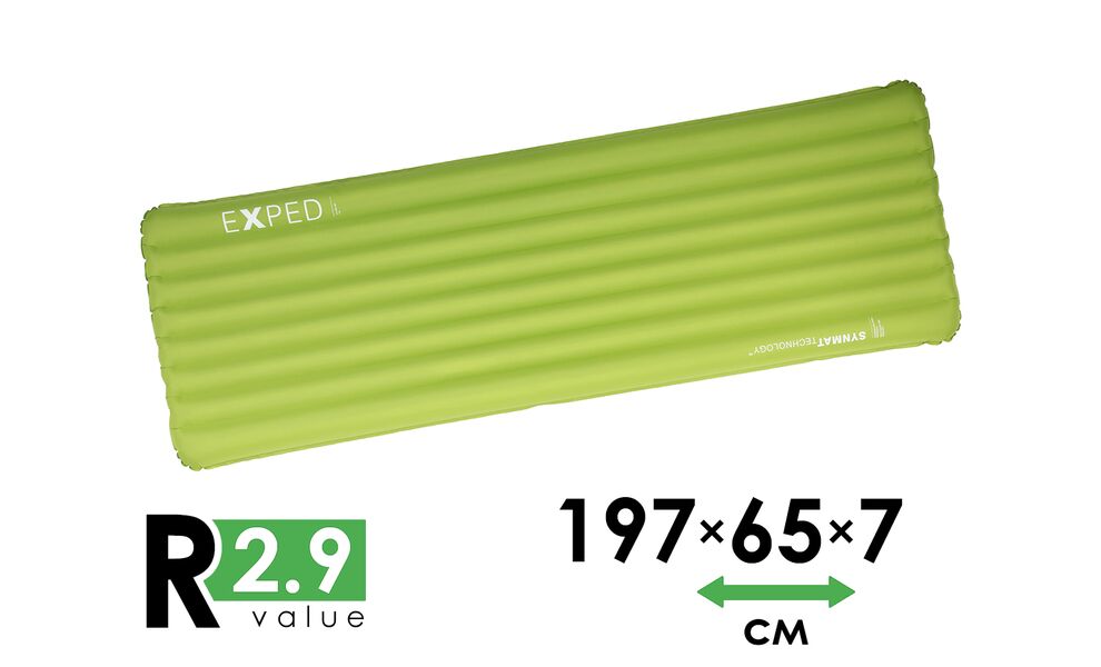 - Оснащений фірмовими клапанами Exped, що полегшують процес надування та здування килимка, адже працюють тільки в одному напрямку.