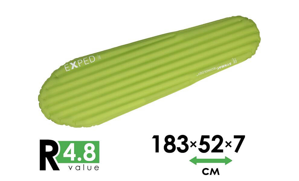 - Оснащений фірмовими клапанами Exped, що полегшують процес надування та здування килимка, адже працюють тільки в одному напрямку.