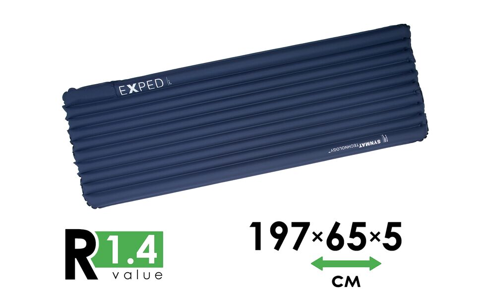 - Оснащений фірмовим плоским клапаном Exped, що полегшує процес надування та здування килимка, адже працює тільки в одному напрямку.
