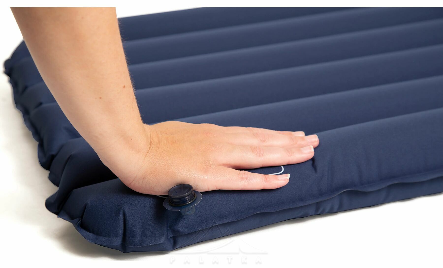 - Вбудований насос допоможе швидко надути килимок та запобігає потраплянню в середину вологого повітря.