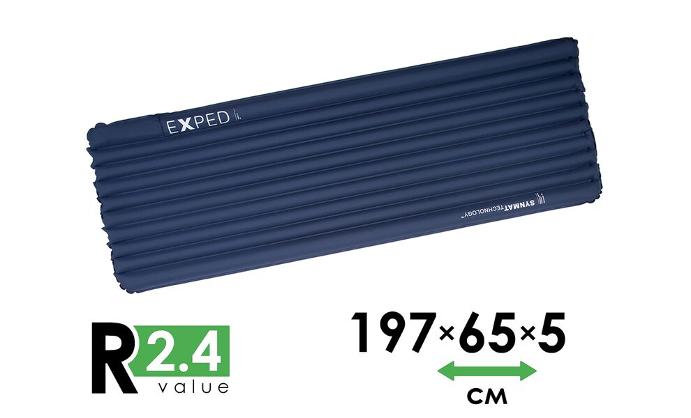 - Оснащений фірмовим плоским клапаном Exped, що полегшує процес надування та здування килимка, адже працює тільки в одному напрямку.