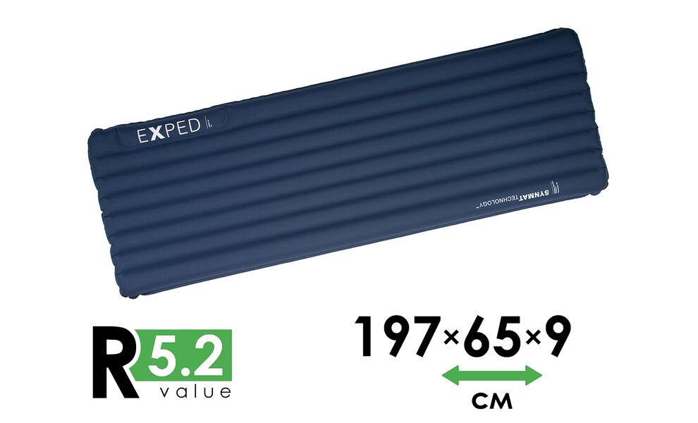 Надувний килимок Exped Versa 5R — багатофункціональний надувний килимок з вбудованим насосом. Призначений для організації спального місця в похідних умовах протягом цілого року.