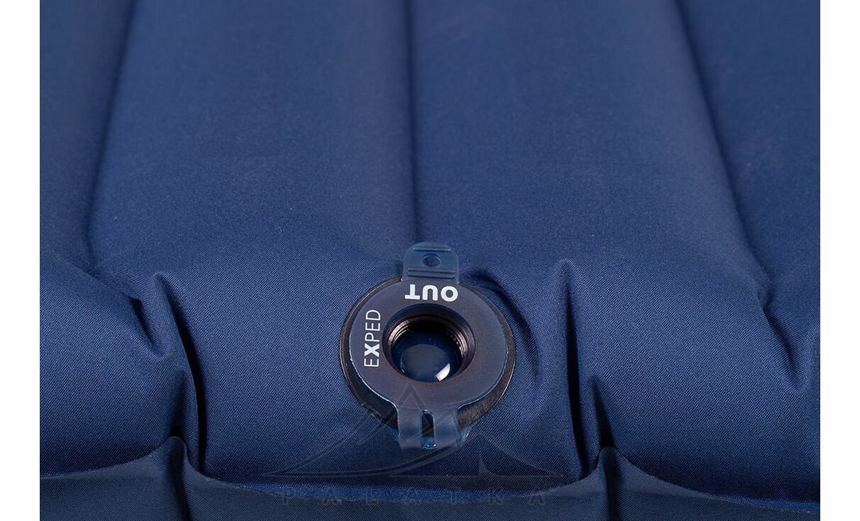 - Оснащений фірмовим плоским клапаном Exped, що полегшує процес надування та здування килимка, адже працює тільки в одному напрямку.