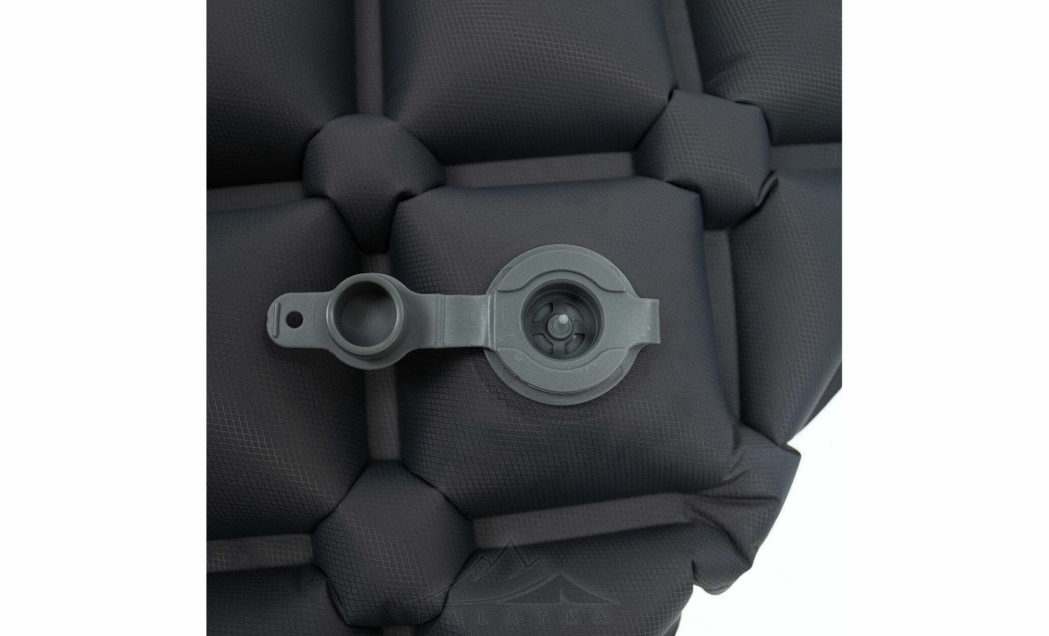- Один клапан для надування та здування килимка. Щоб здути килимок необхідно відкрити клапан та натиснути на нього.