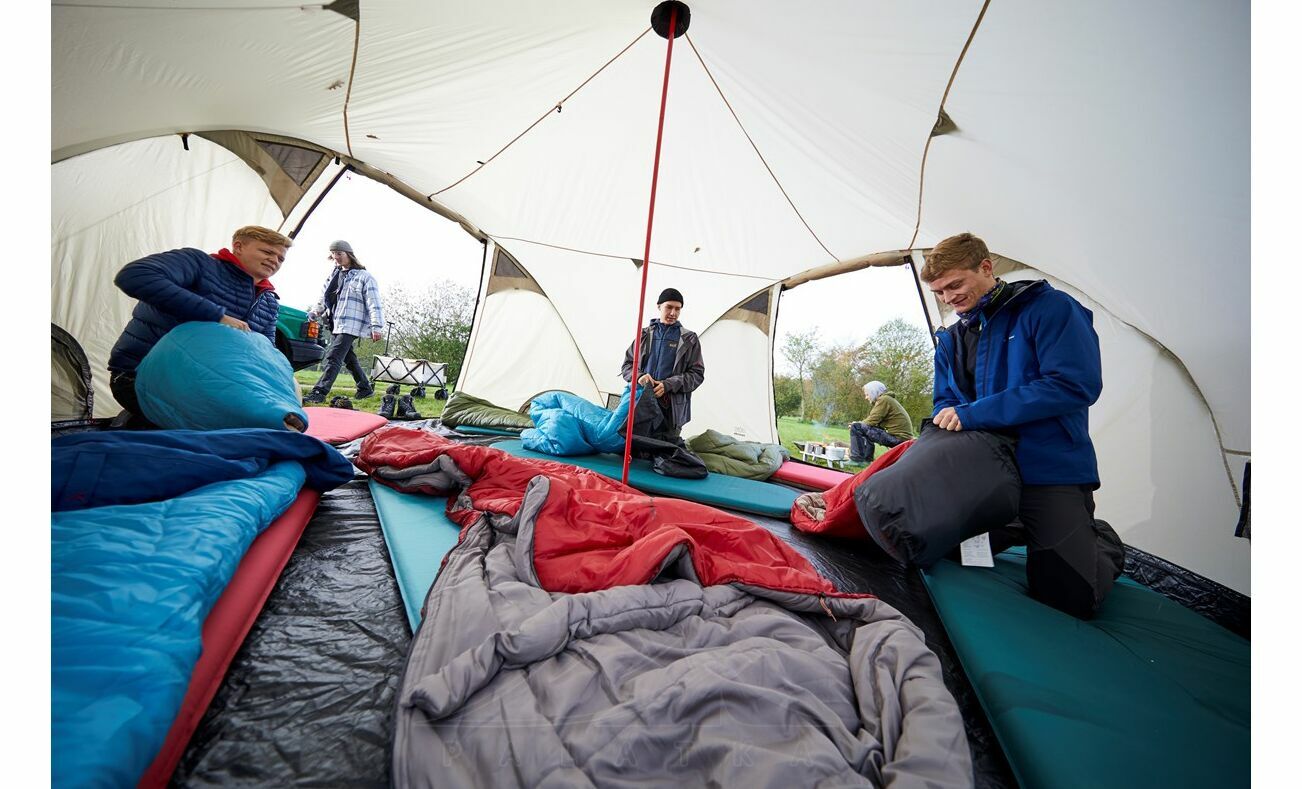 - Всередині килимок наповнений піною (PU foam) — вона поділена на 5 секцій, що забезпечує меншу вагу килимка та покращує теплоізоляційні властивості.