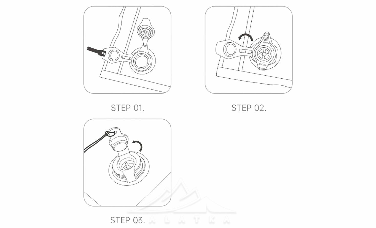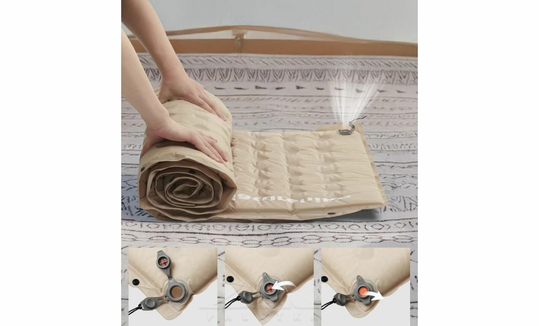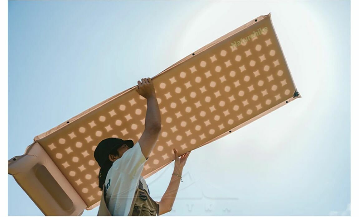 - Оснащений багатофункціональним клапаном: достатньо відкрити його, і килимок автоматично наповнюється повітрям приблизно на 70%.