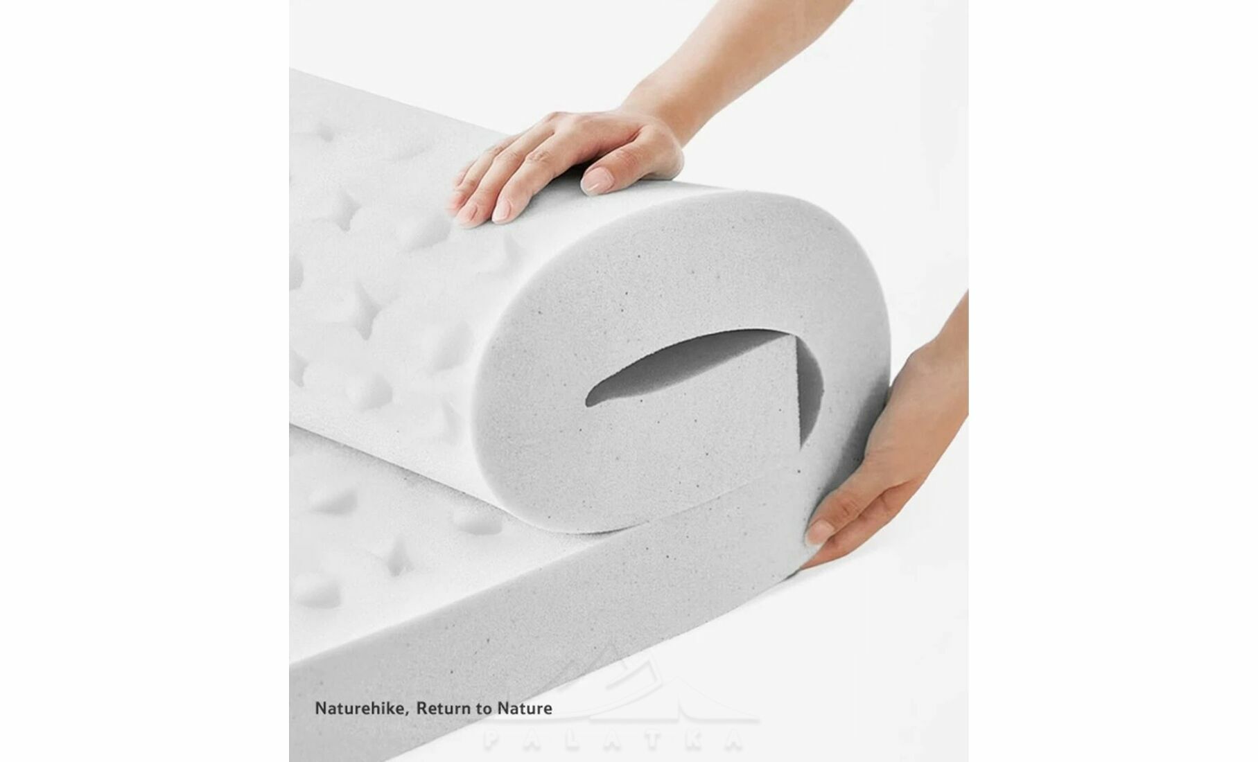 - Завдяки щільній конструкції товщиною 6 см килимок ефективно ізолює тіло від холоду, вологи та нерівностей ґрунту. Навіть кам’яниста або тверда поверхня стає значно комфортнішою, дозволяючи розслабитися та насолодитися відпочинком.