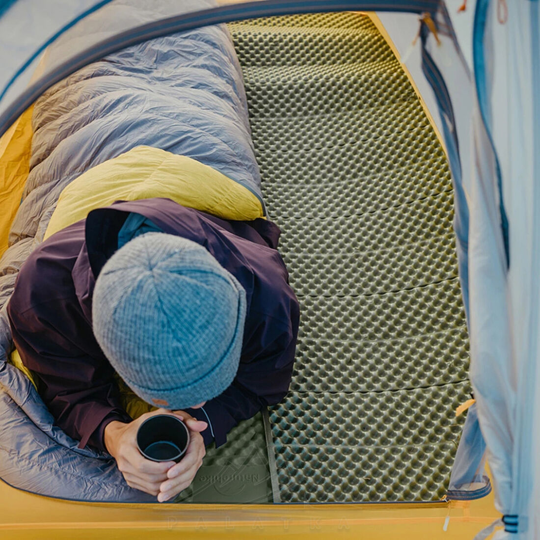 - Завдяки рельєфній поверхні збільшується висота каремату, підвищуючи його теплоізоляційні властивості та амортизацію для комфорту на будь-якій поверхні.