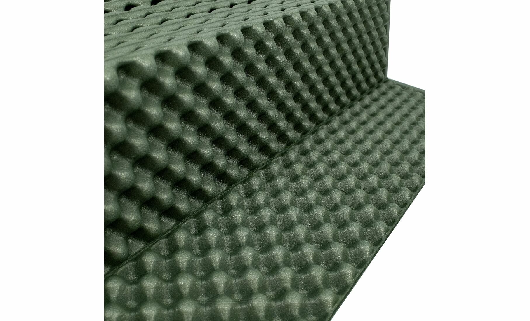 - Завдяки рельєфній поверхні збільшується висота каремату, підвищуючи його теплоізоляційні властивості та амортизацію для комфорту на будь-якій поверхні.