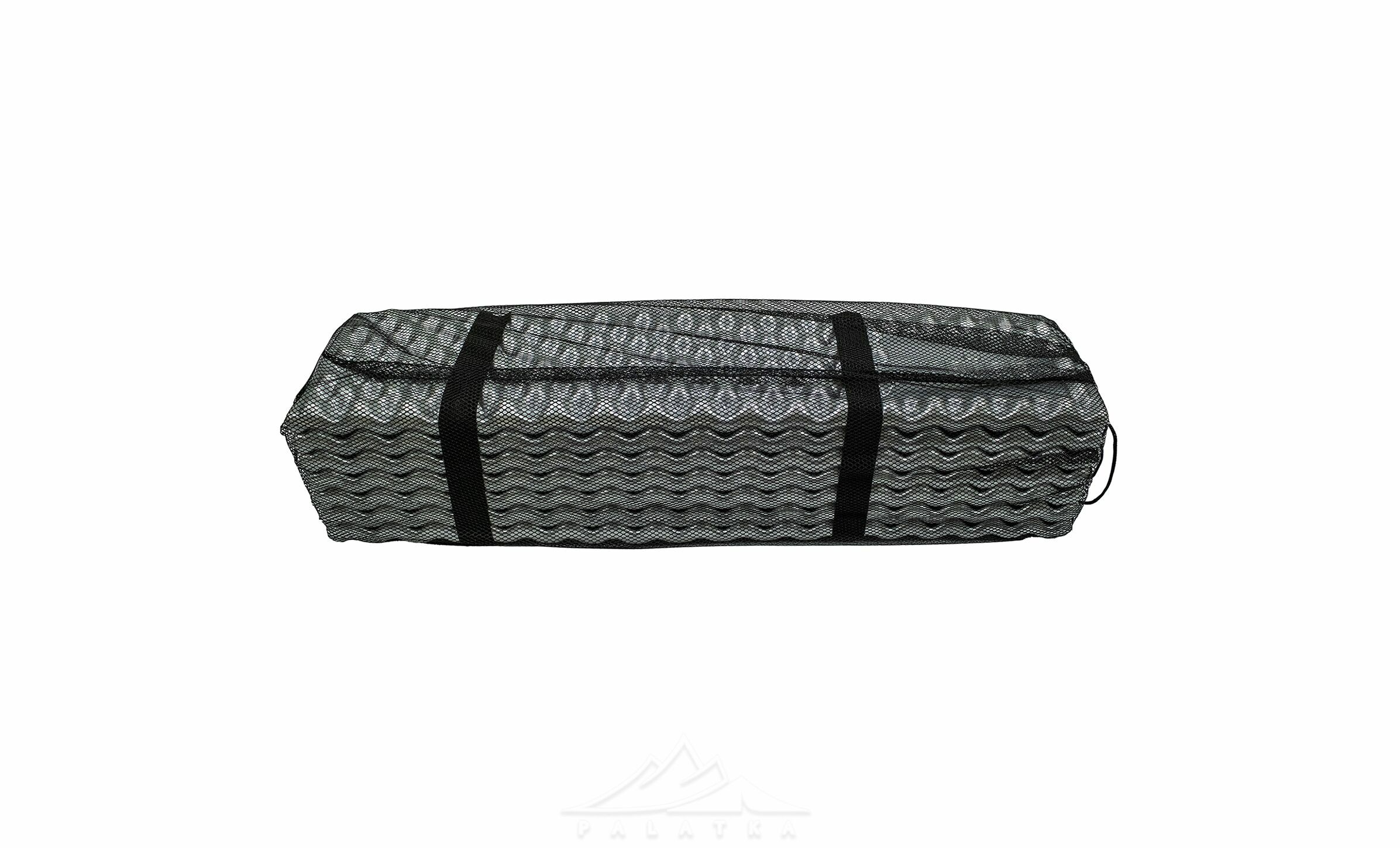 - Компактно складається у форму гармошки — його можна також використовувати як стілець в складеному вигляді, розстелити не повністю і зробити коротший каремат з подушкою, або розстелити повністю, як повноцінний каремат.