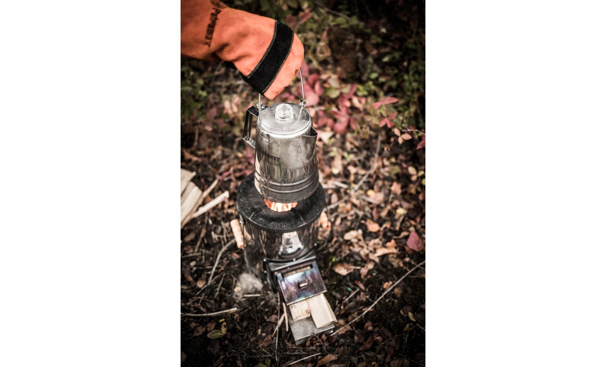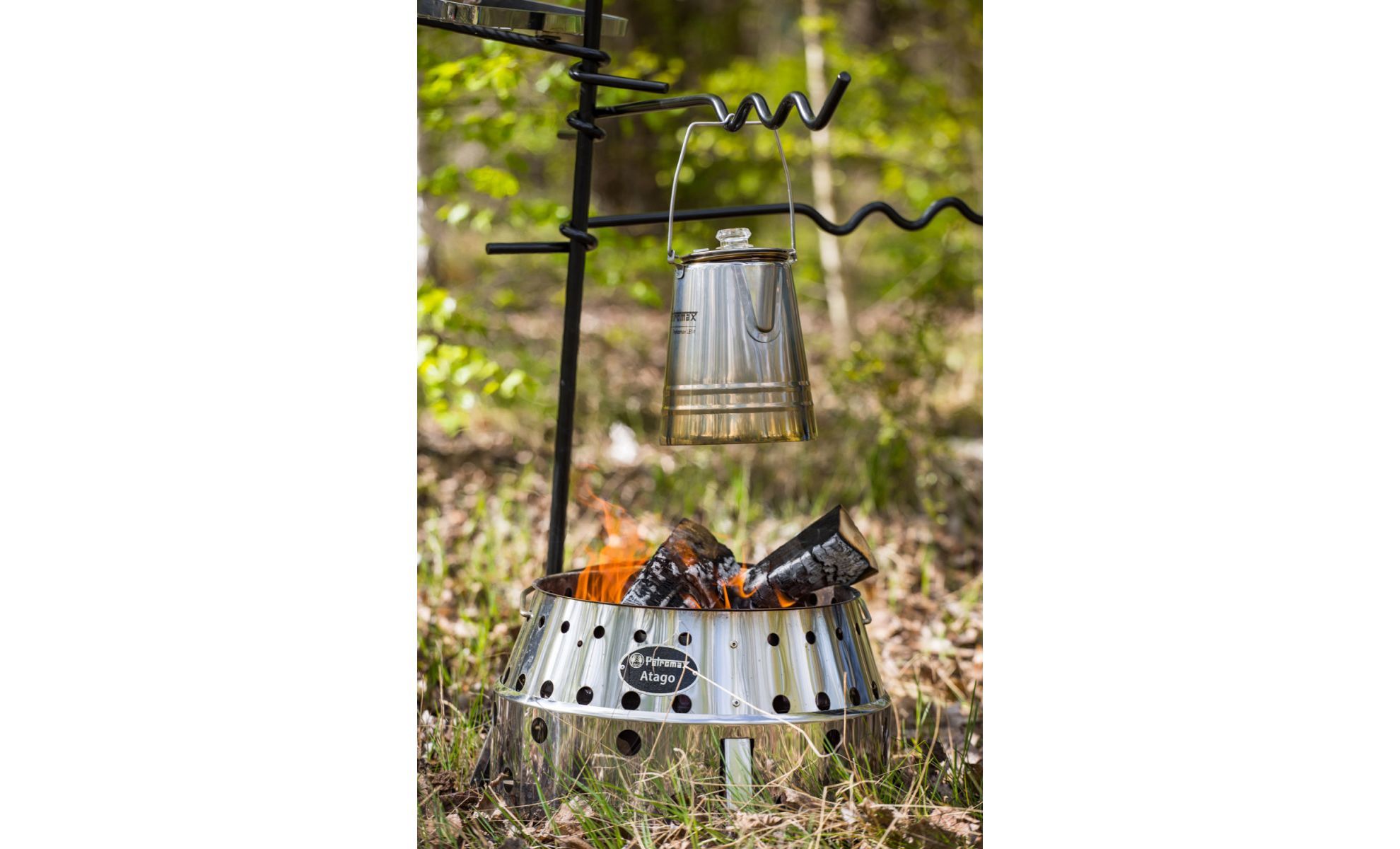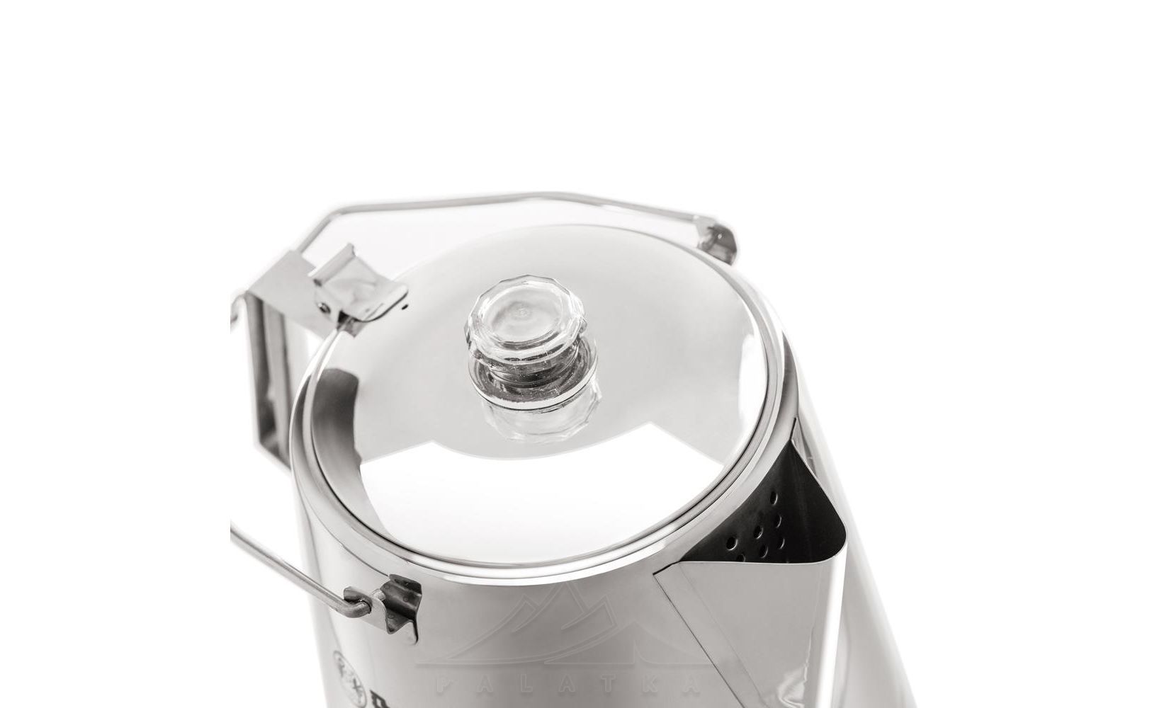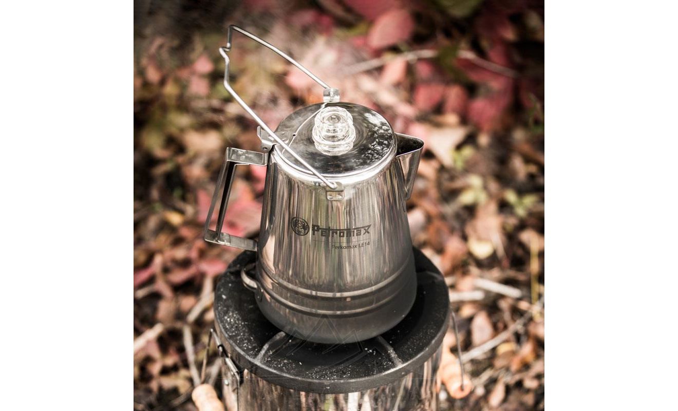 Кавоварка-перколятор Petromax Percolator Perkomax — кавоварка з термостійкої нержавіючої сталі та петлеподібною ручкою, яка працює за принципом гейзера. Універсальний варіант для кемпінгу, активного відпочинку на природі (можна підвісити над вогнищем) або використовувати вдома на електричній або газовій плиті. Дозволяє заварювати каву або чай з насиченим та збалансованим смаком.
