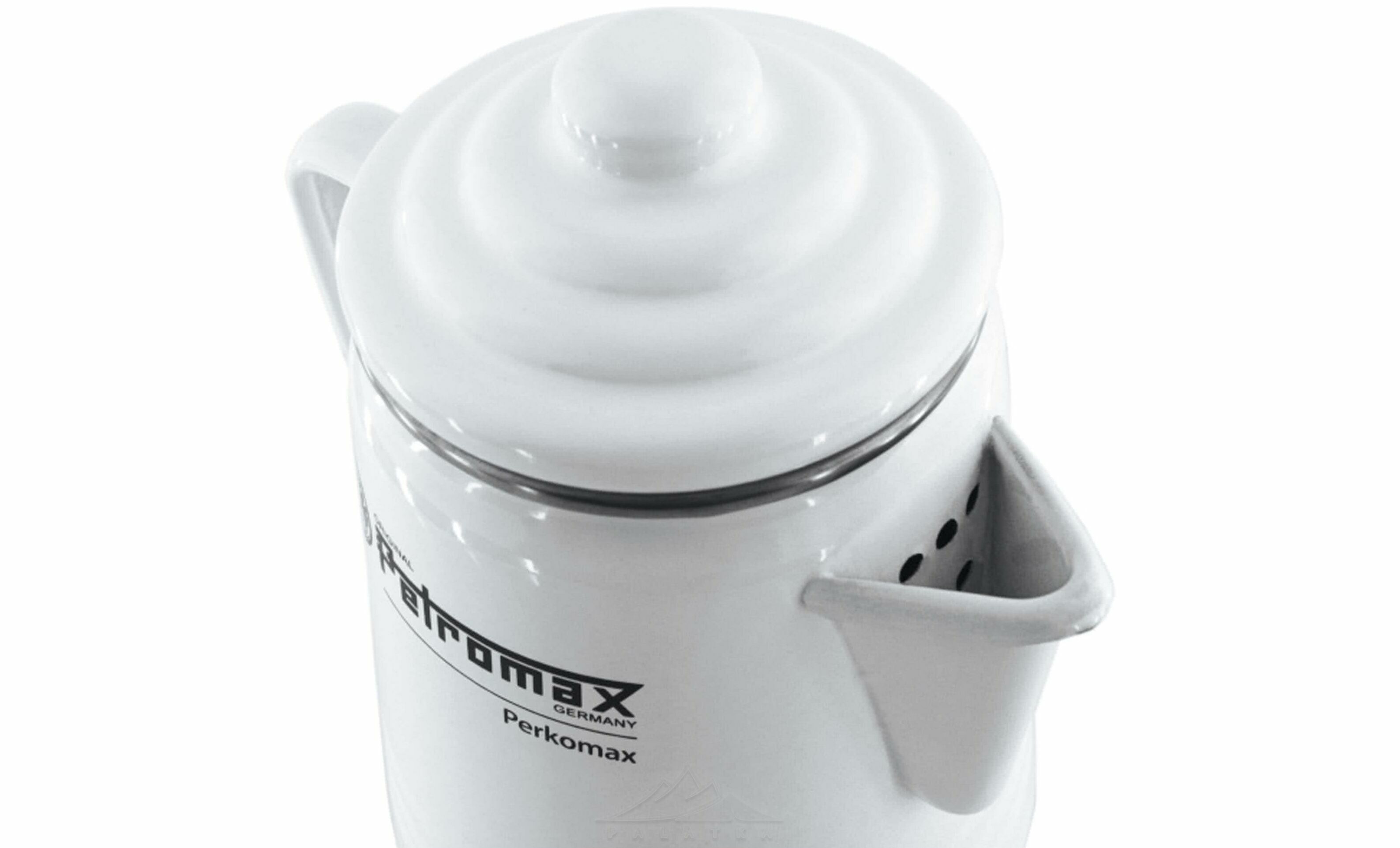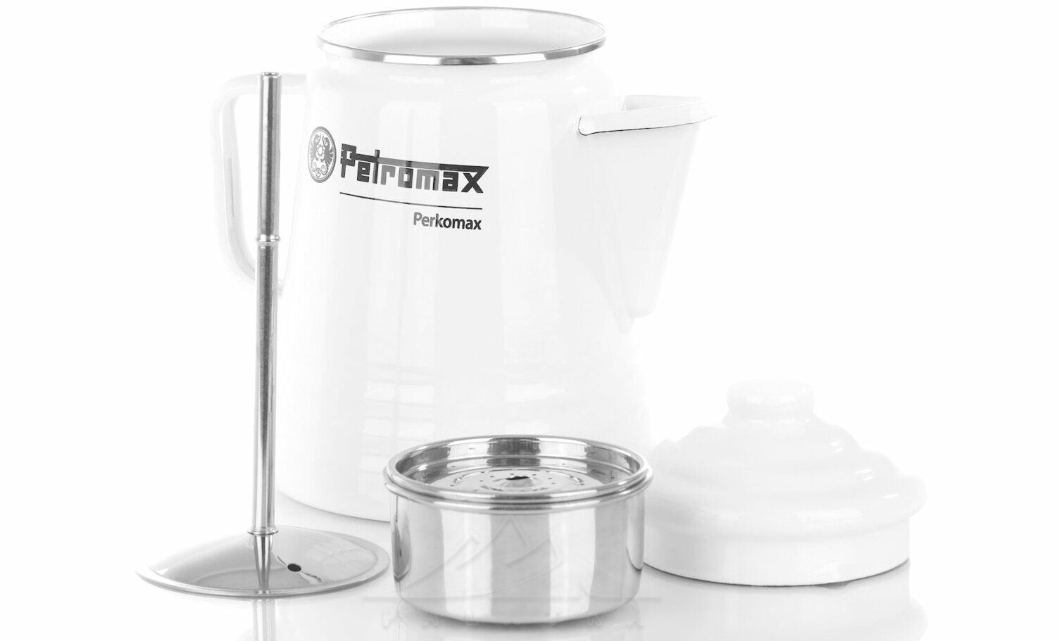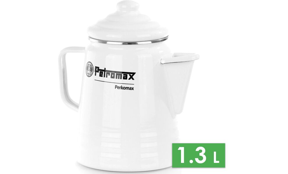 Petromax Tea and Coffee Percolator — емальована кавоварка з термостійкою поверхнею, що працює за принципом гейзера. Завдяки міцній емалі відмінно підходить для приготування напоїв над вогнищем, а також для всіх типів плит.