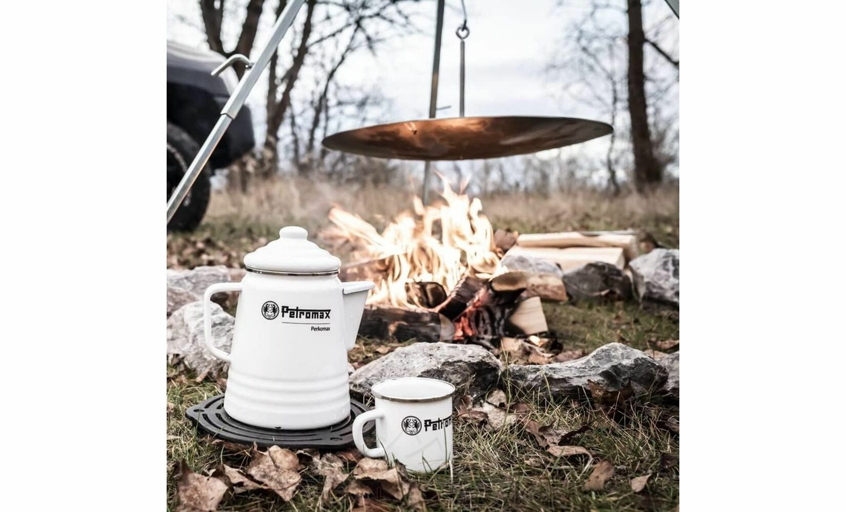 - Для встановлення перколятора на вогнище підійде підставка Petromax Cast-Iron Stack Grate (продається окремо).