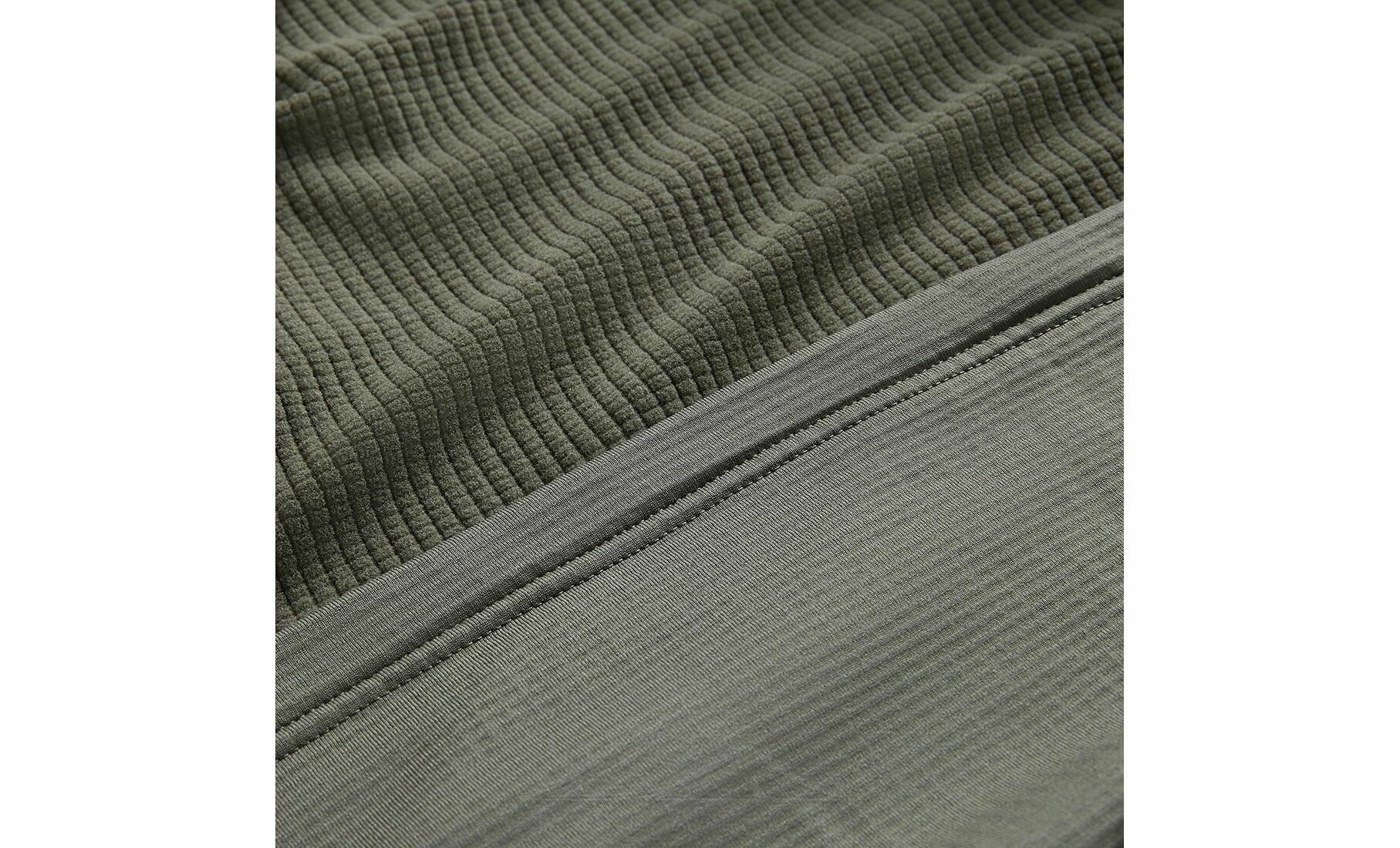 • Фліс Thermo Grid з переробленого поліестеру з додаванням еластану ефективно зберігає тепло, добре пропускає повітря та активно відводить вологу під час фізичних навантажень.