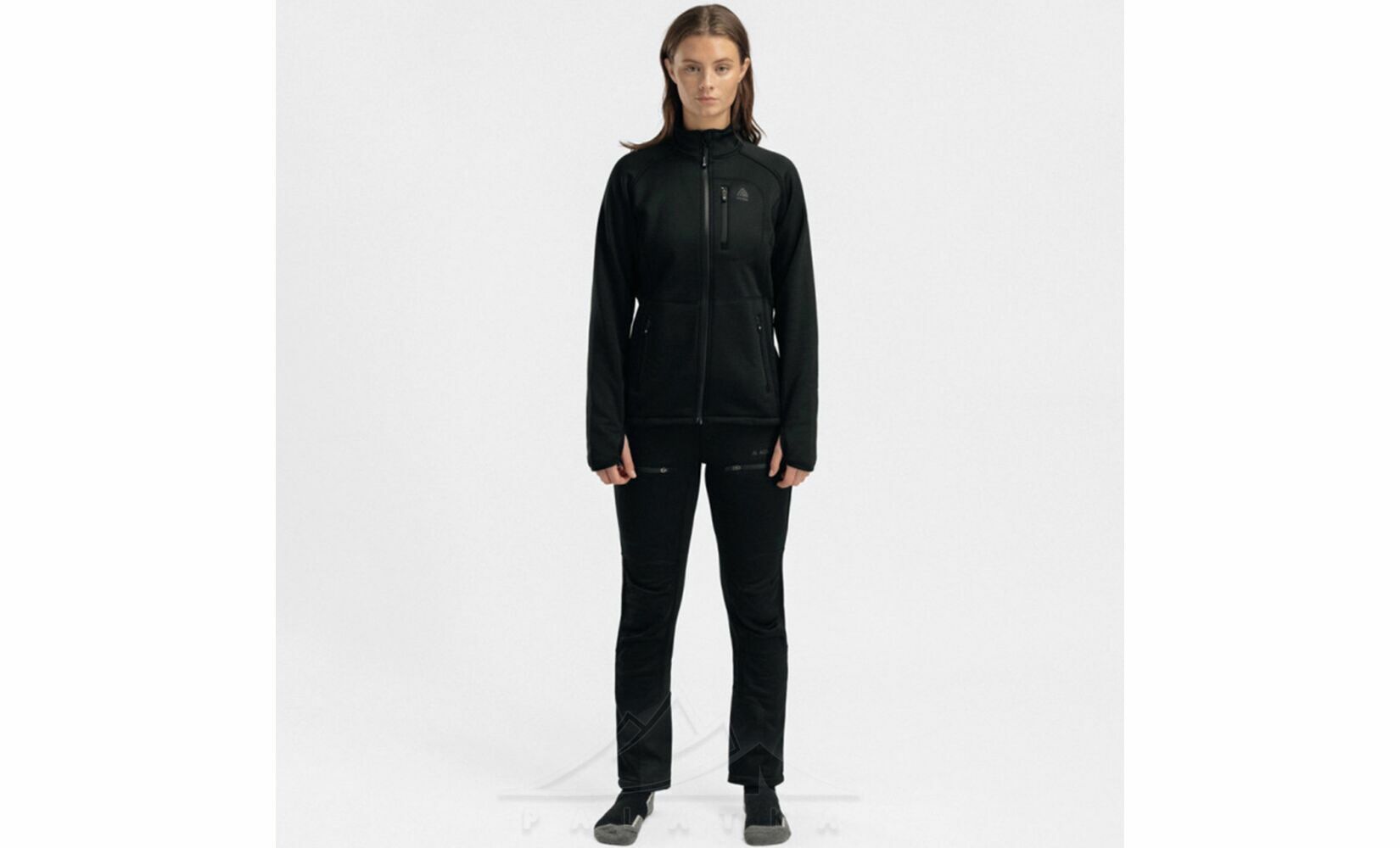 • Фірмовий двобічний матеріал WoolShell поєднує м’яку мериносову вовну з внутрішнього боку та міцний зовнішній синтетичний шар із поліестеру й еластану. Флісова структура з делікатним начосом утримує тепле повітря біля тіла, забезпечуючи ефективне утеплення, природну терморегуляцію та комфорт, тоді як зовнішня поверхня підвищує зносостійкість, захищає від вітру і не сковує рухів.