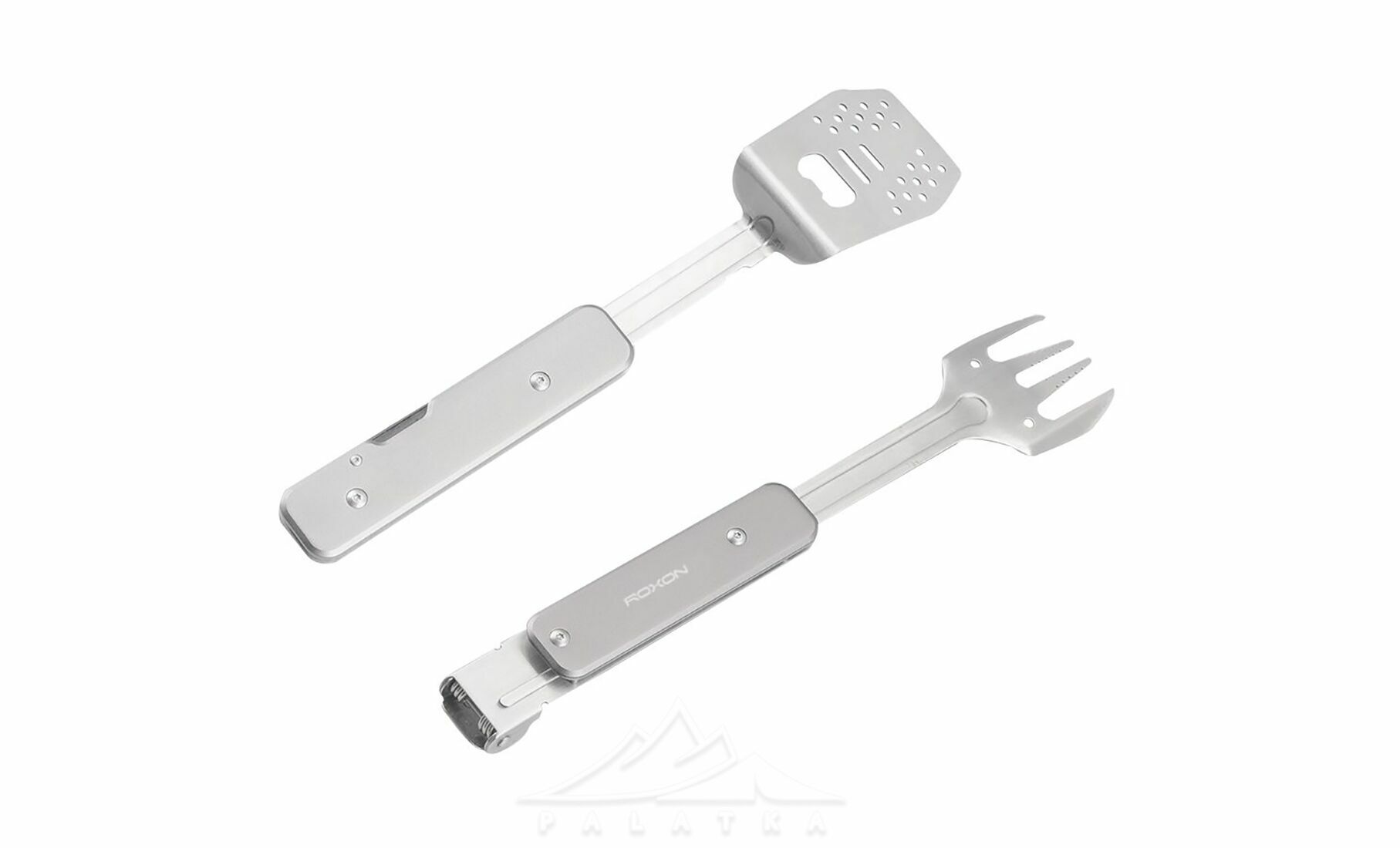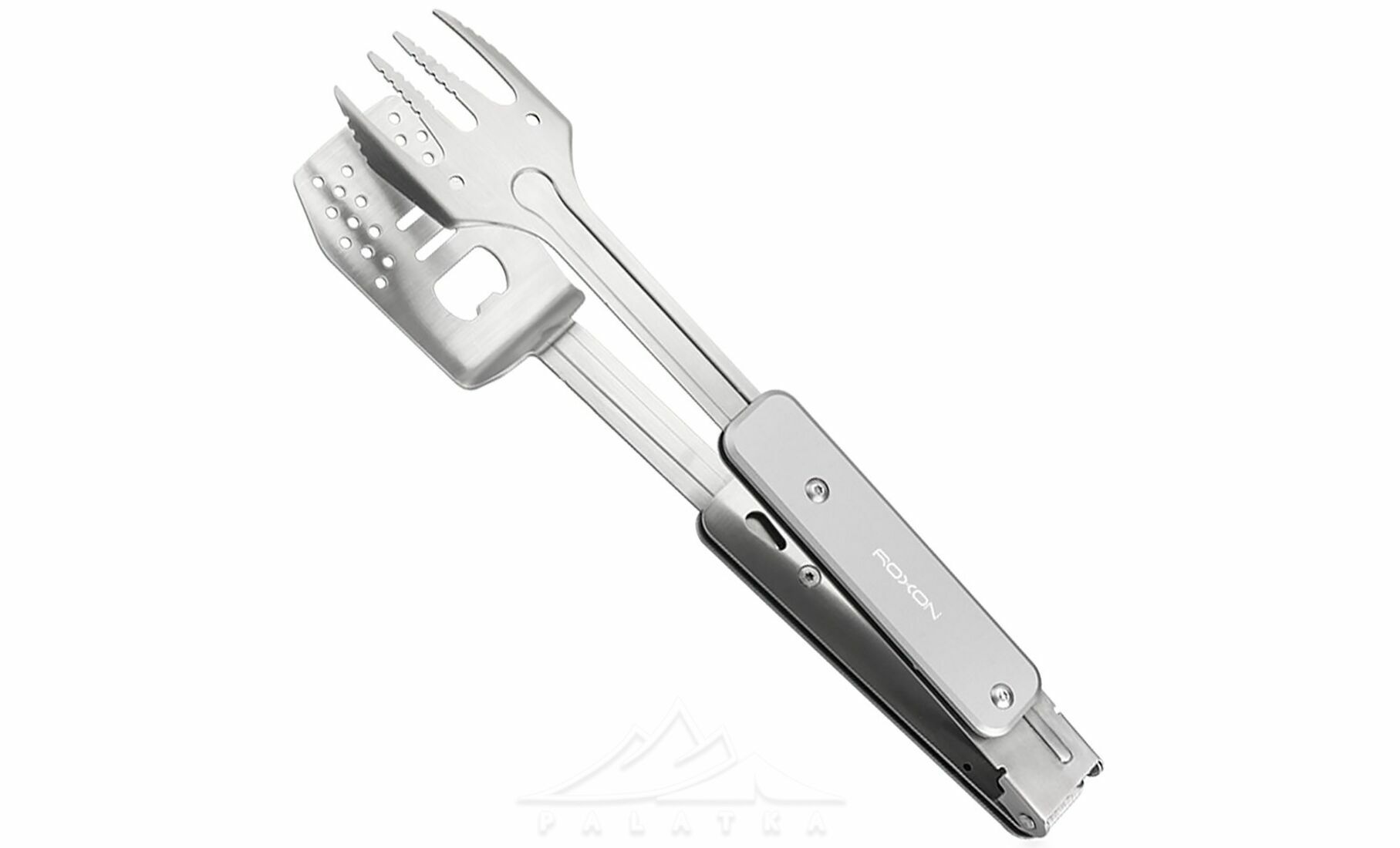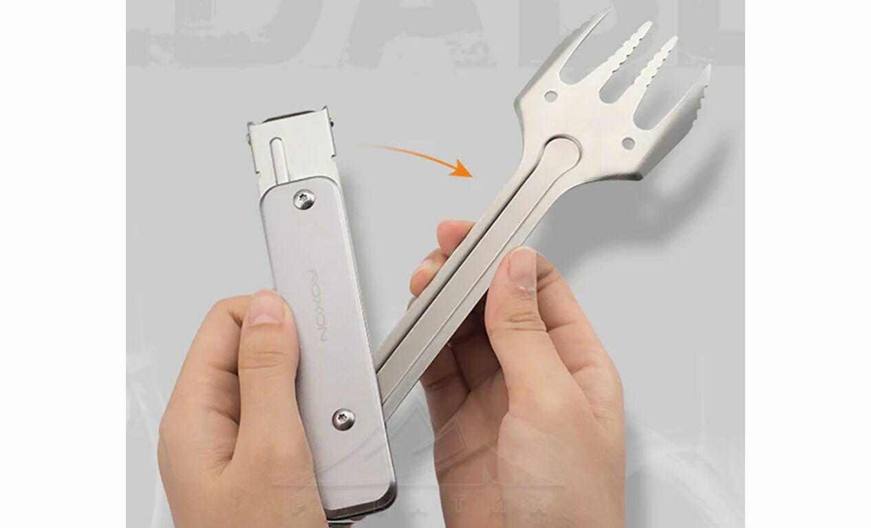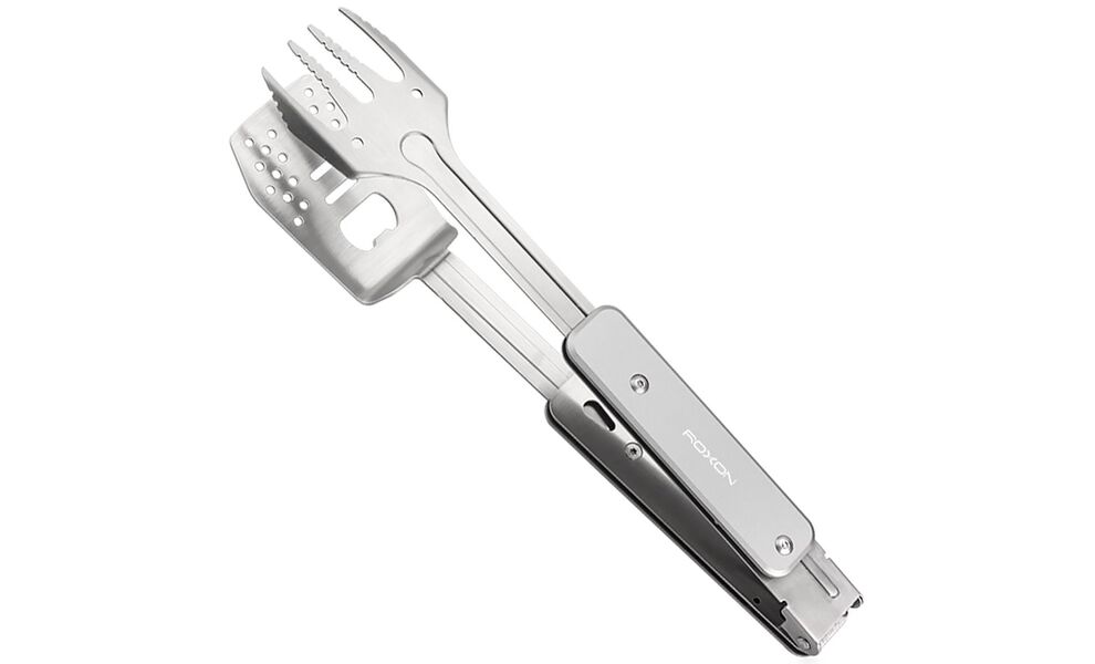 Roxon S602 — це компактний, зручний та багатофункціональний інструмент для приготування барбекю, який ідеально підходить для пікніків, кемпінгу чи використання на дачі. Мультитул включає металеву лопатку та виделку, які можна використовувати окремо або з'єднати для створення зручних щипців. Лопатка додатково оснащена вбудованою відкривачкою для пляшок.