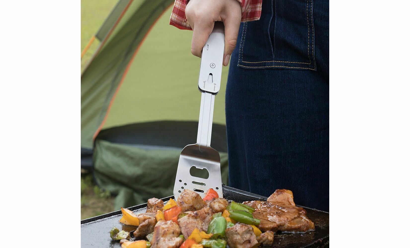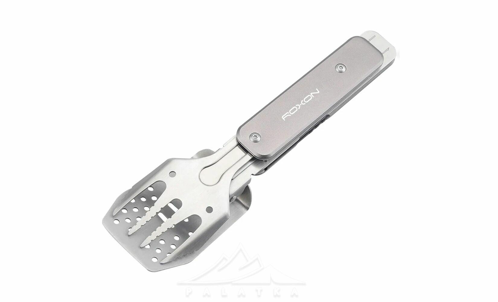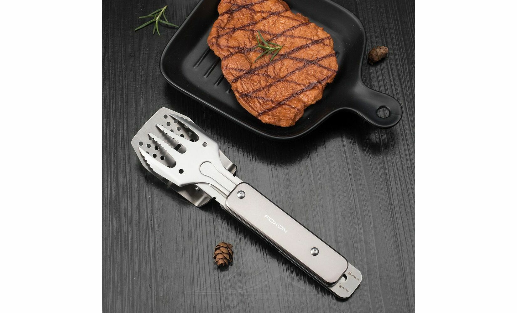Roxon S602 — це компактний, зручний та багатофункціональний інструмент для приготування барбекю, який ідеально підходить для пікніків, кемпінгу чи використання на дачі. Мультитул включає металеву лопатку та виделку, які можна використовувати окремо або з'єднати для створення зручних щипців. Лопатка додатково оснащена вбудованою відкривачкою для пляшок.