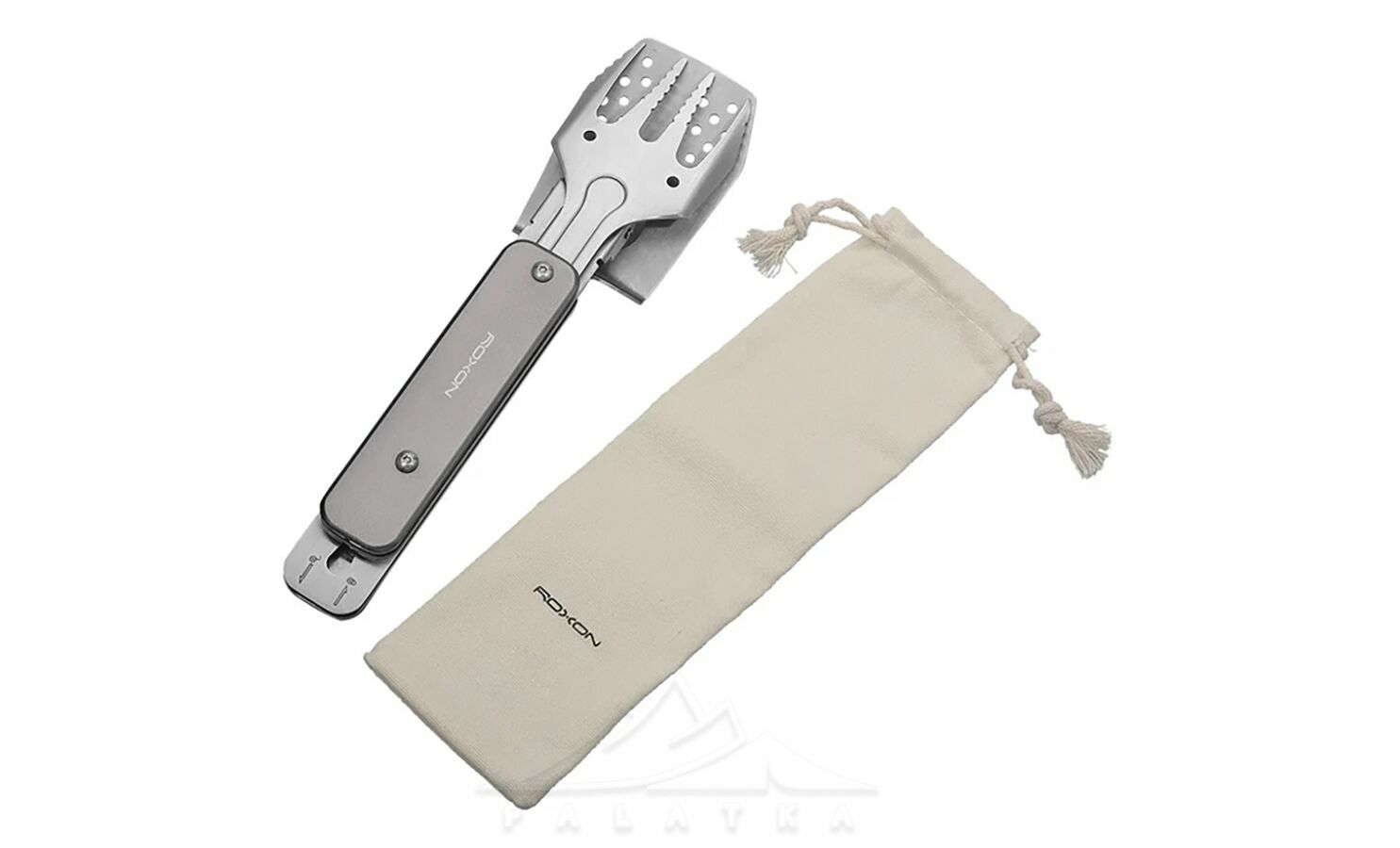 - У складеному стані лопатка та виделка з’єднуються для зручного зберігання.