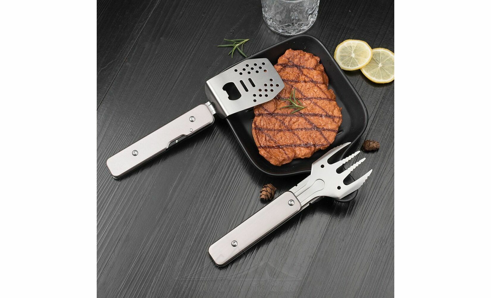 - У розкладеному вигляді ці прибори можна перетворити на щипці для зручного перевертання м'яса, овочів чи інших продуктів на грилі.