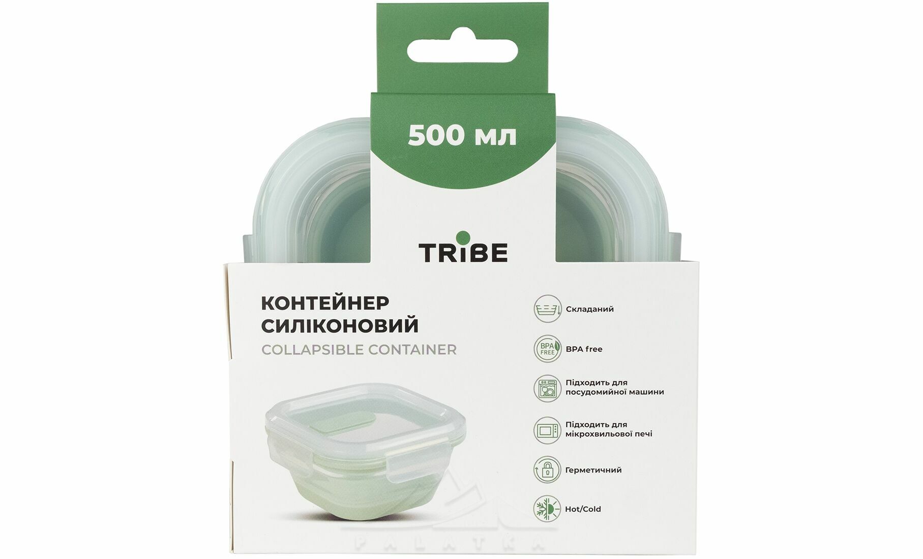 Складний туристичний герметичний контейнер для їжі Tribe Collapsible (Mint) на 500 мл, харчовий силікон