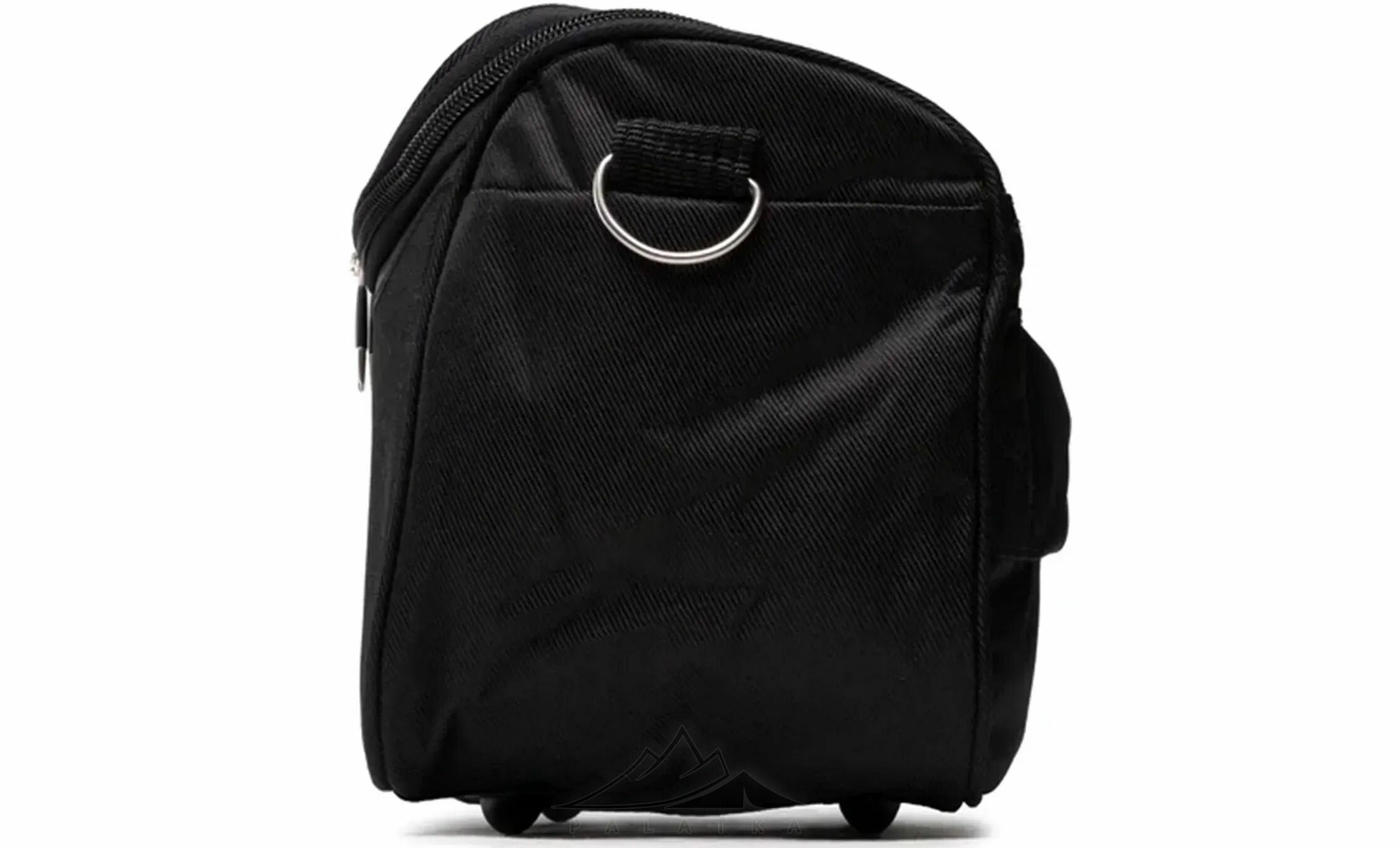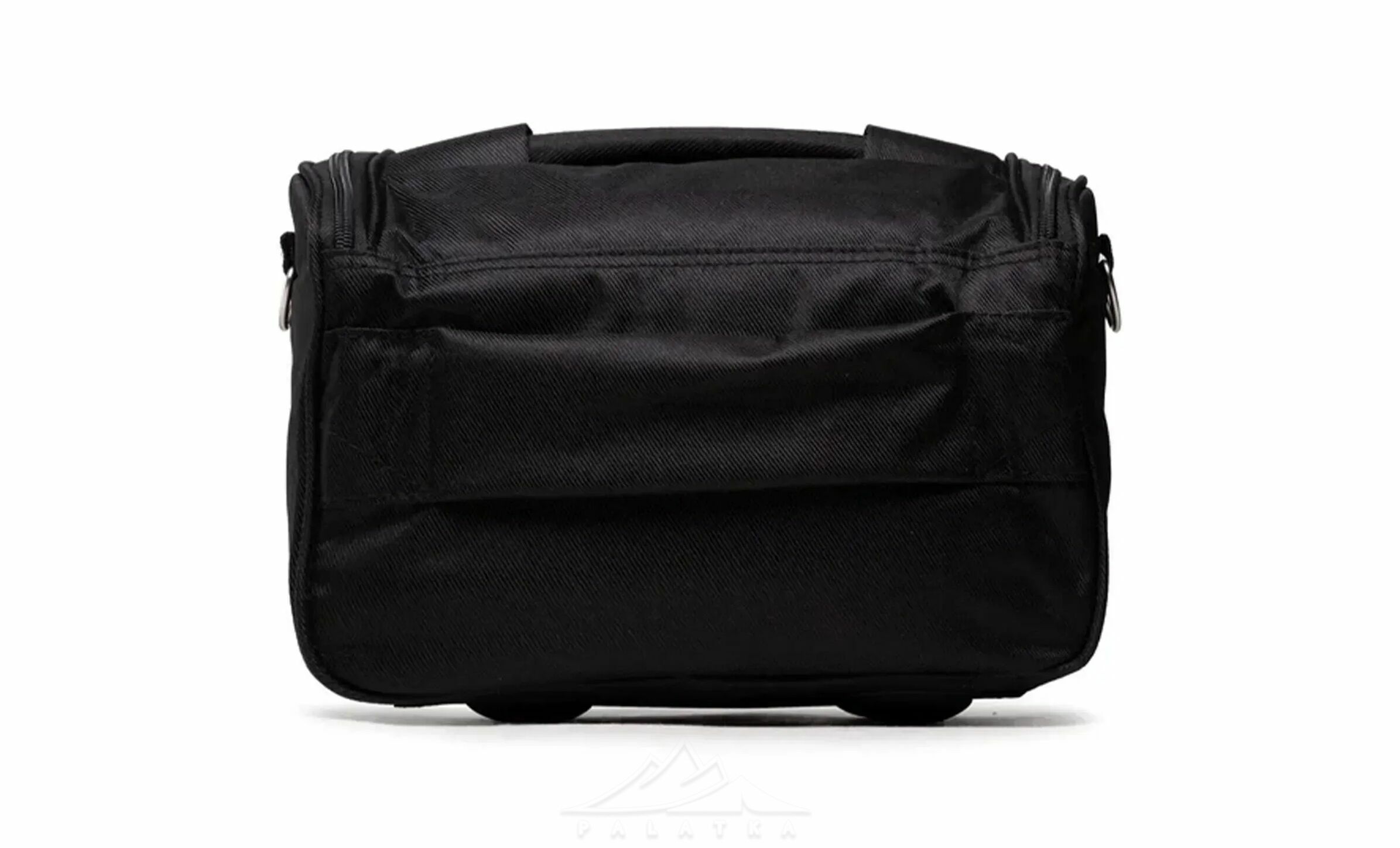 - На тильній стороні є стрічка для кріплення на телескопічну ручку валізи, яка фіксується текстильною застібкою Velcro, коли не використовується.
