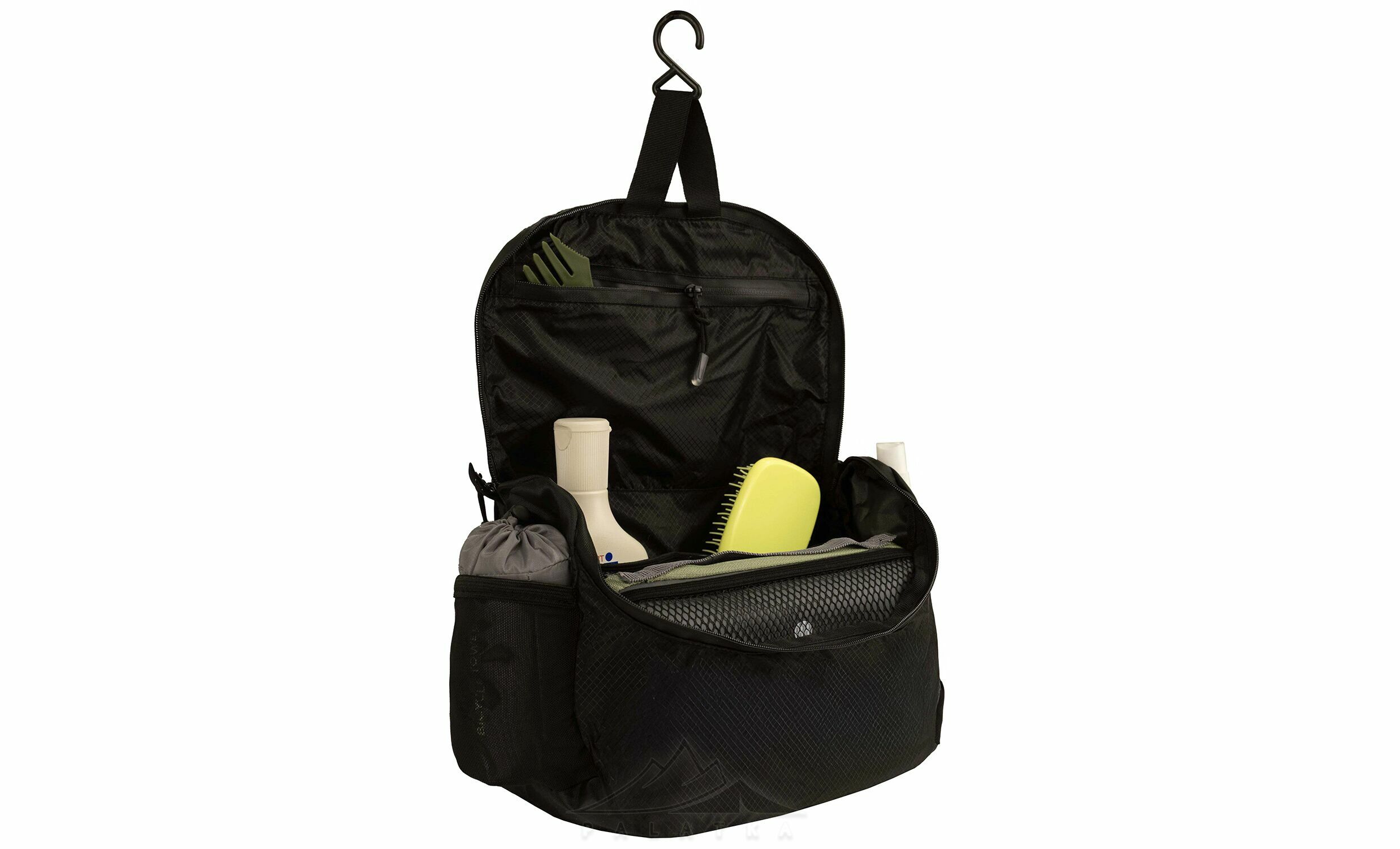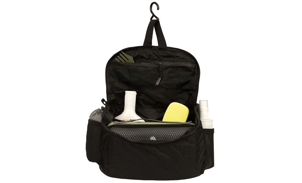 - Гачок для підвішування дозволяє зручно розмістити косметичку у ванній, душовій чи біля умивальника, щоб усе було перед очима і не доводилося шукати місце на мокрих або вузьких поверхнях