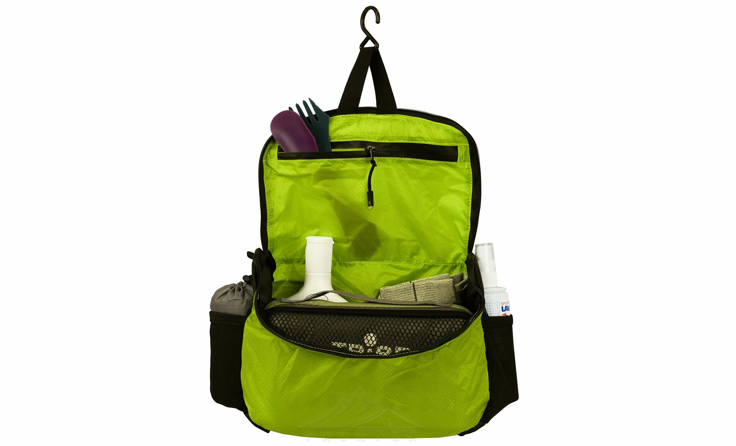 - Гачок для підвішування дозволяє зручно розмістити косметичку у ванній, душовій чи біля умивальника, щоб усе було перед очима і не доводилося шукати місце на мокрих або вузьких поверхнях