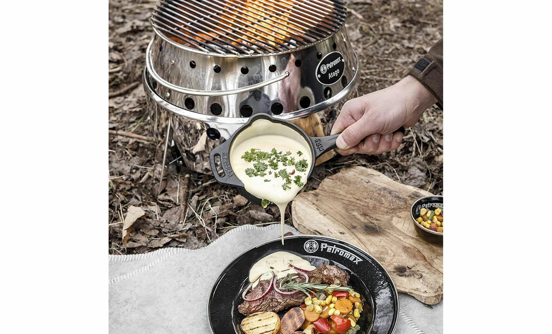Petromax Cast-Iron Sauce Pot — компактний чавунний ківш — ідеальний вибір для приготування вишуканих соусів і заправок на відкритому вогні. В ньому також зручно готувати окремі порцій їжі для одного.