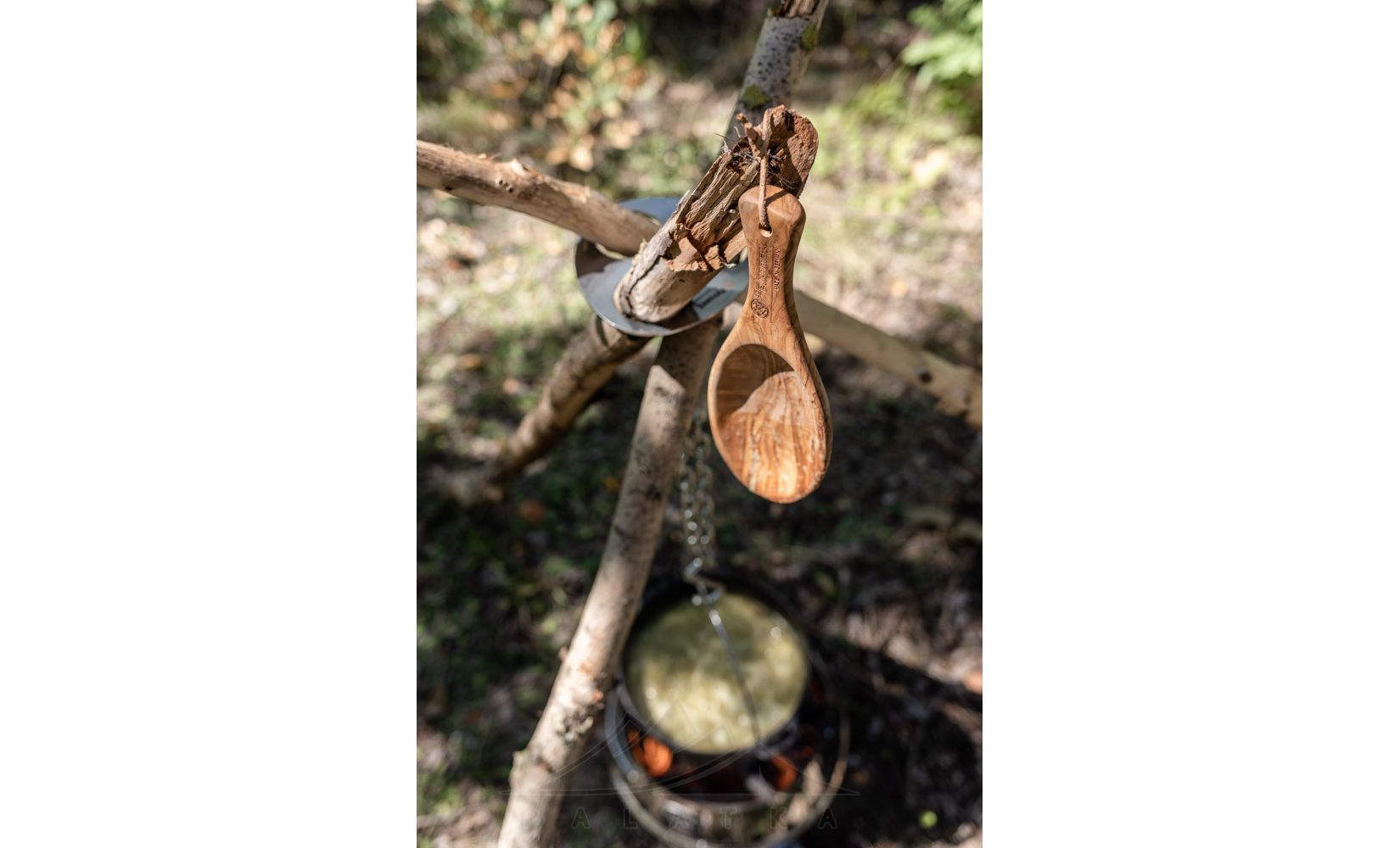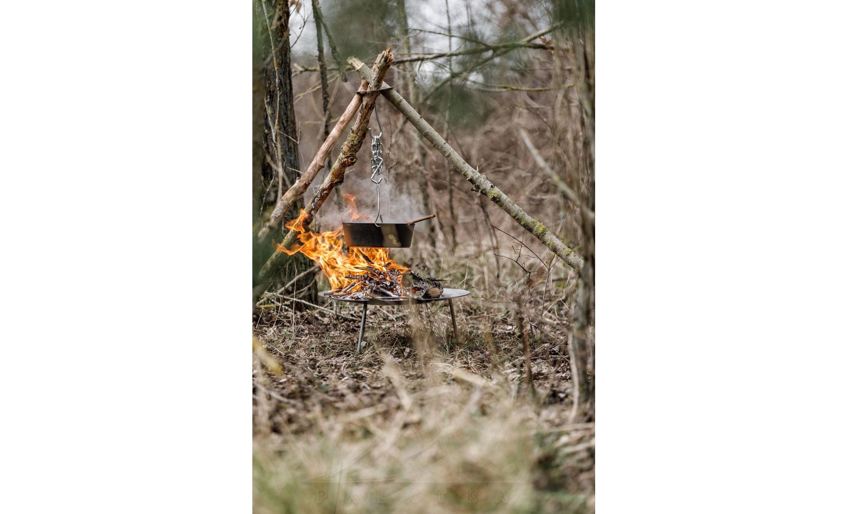 • Завжди стежте за розміром вогнища та опорними ніжками (гілками) вашого місця для готування на тринозі. Вони можуть спалахнути, якщо поставити їх занадто близько до вогнища.