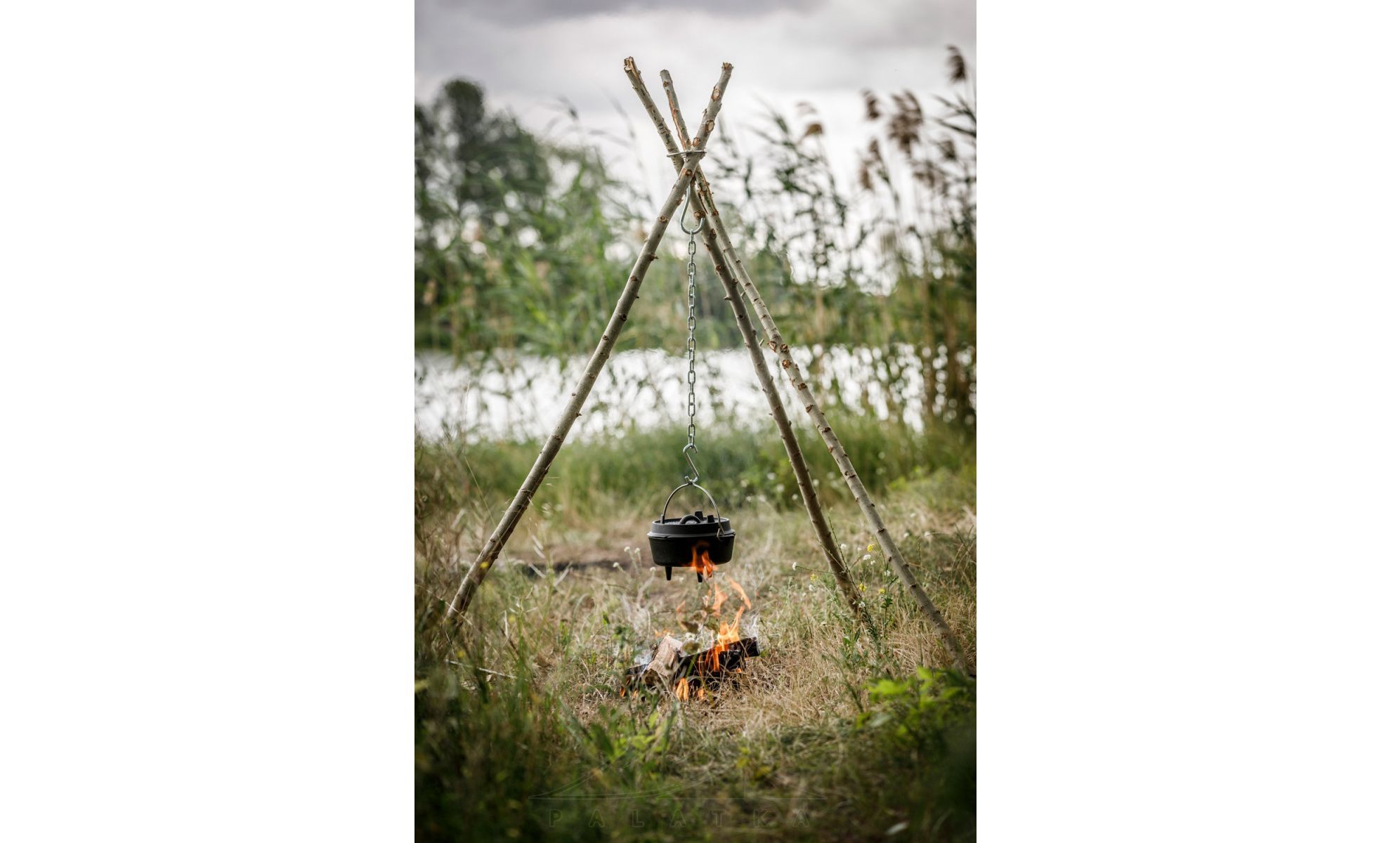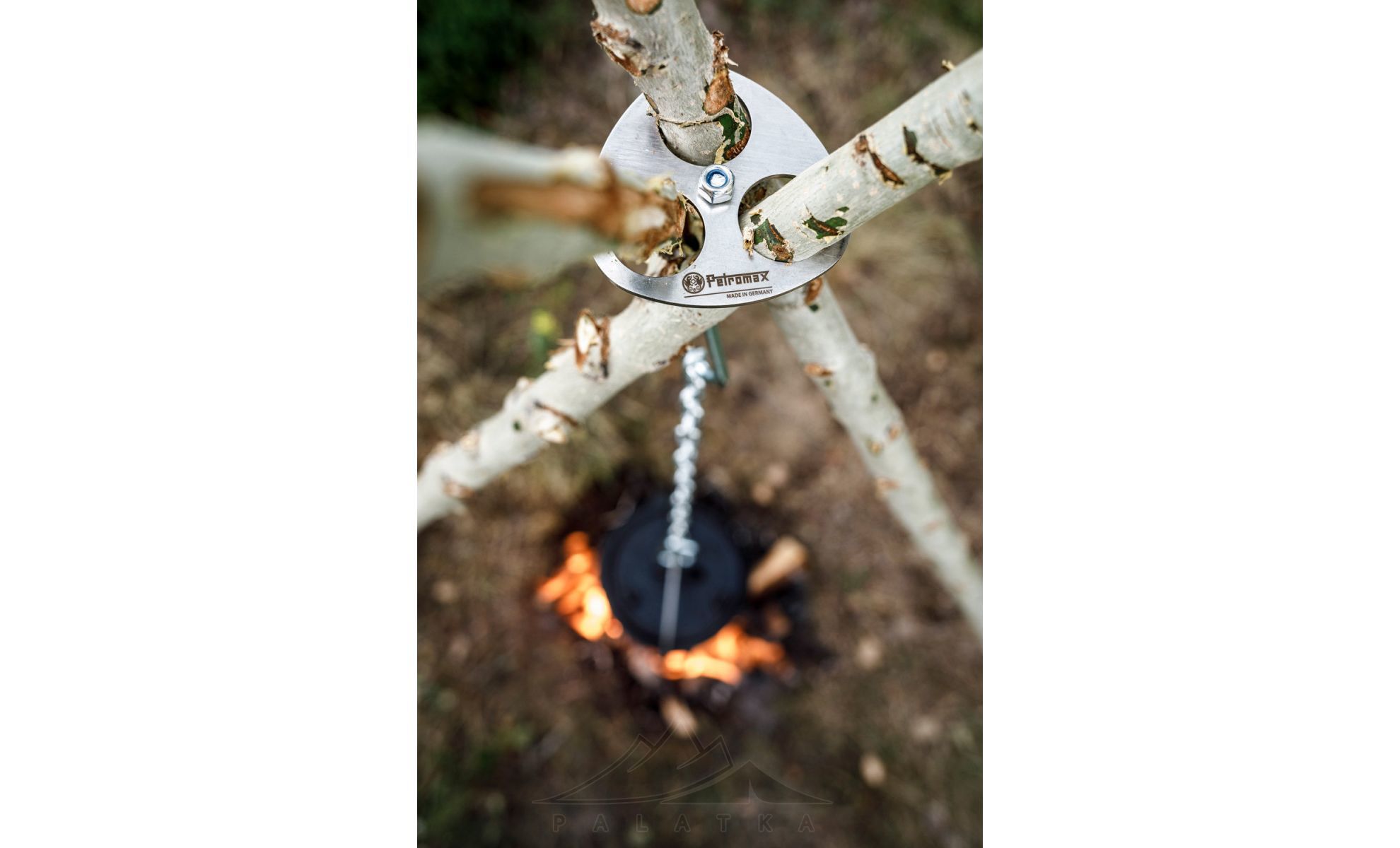 • Завдяки двом гачкам з ланцюгом, загальною довжиною 80 см, можна легко підвісити над вогнищем посуд або чайник.