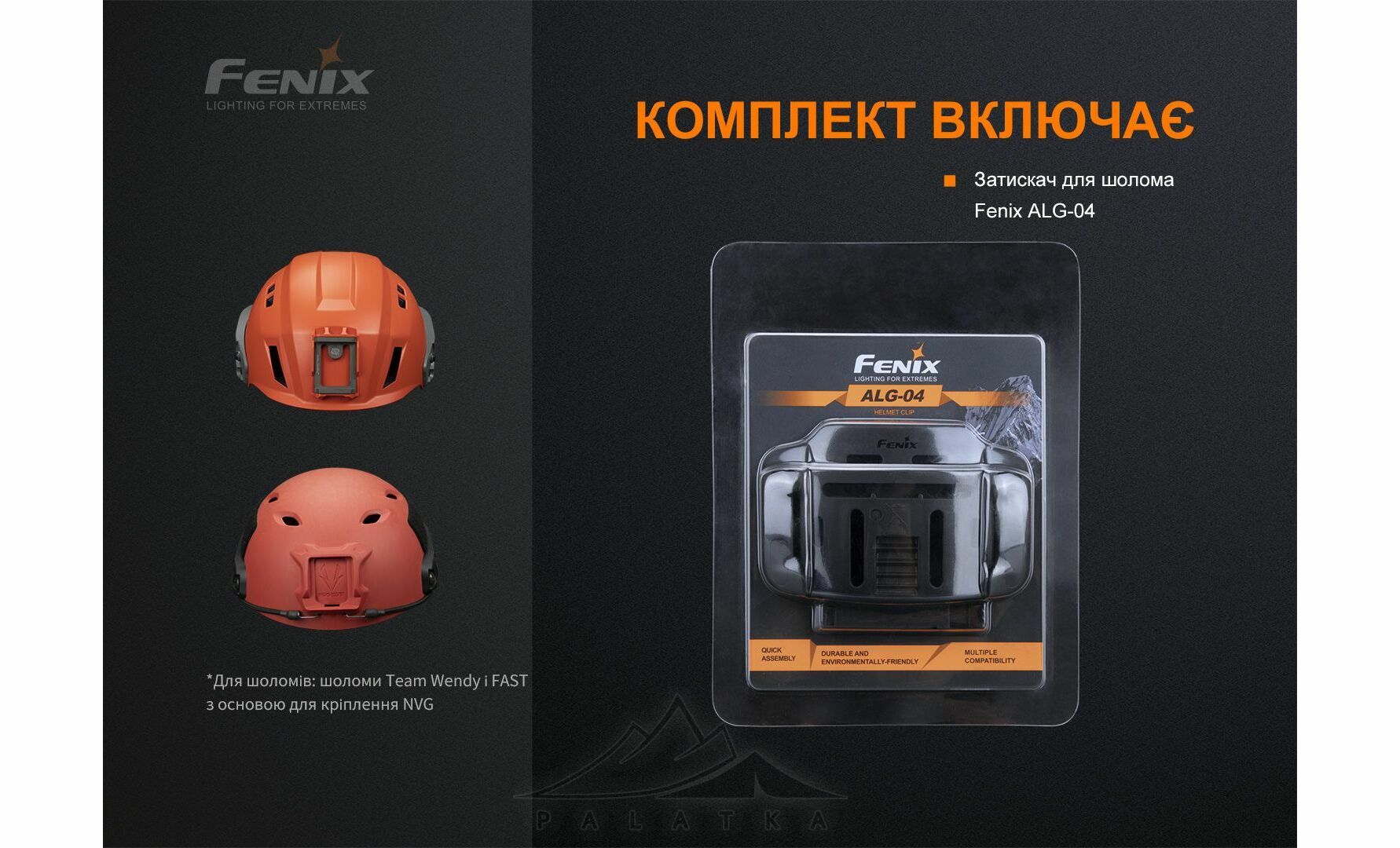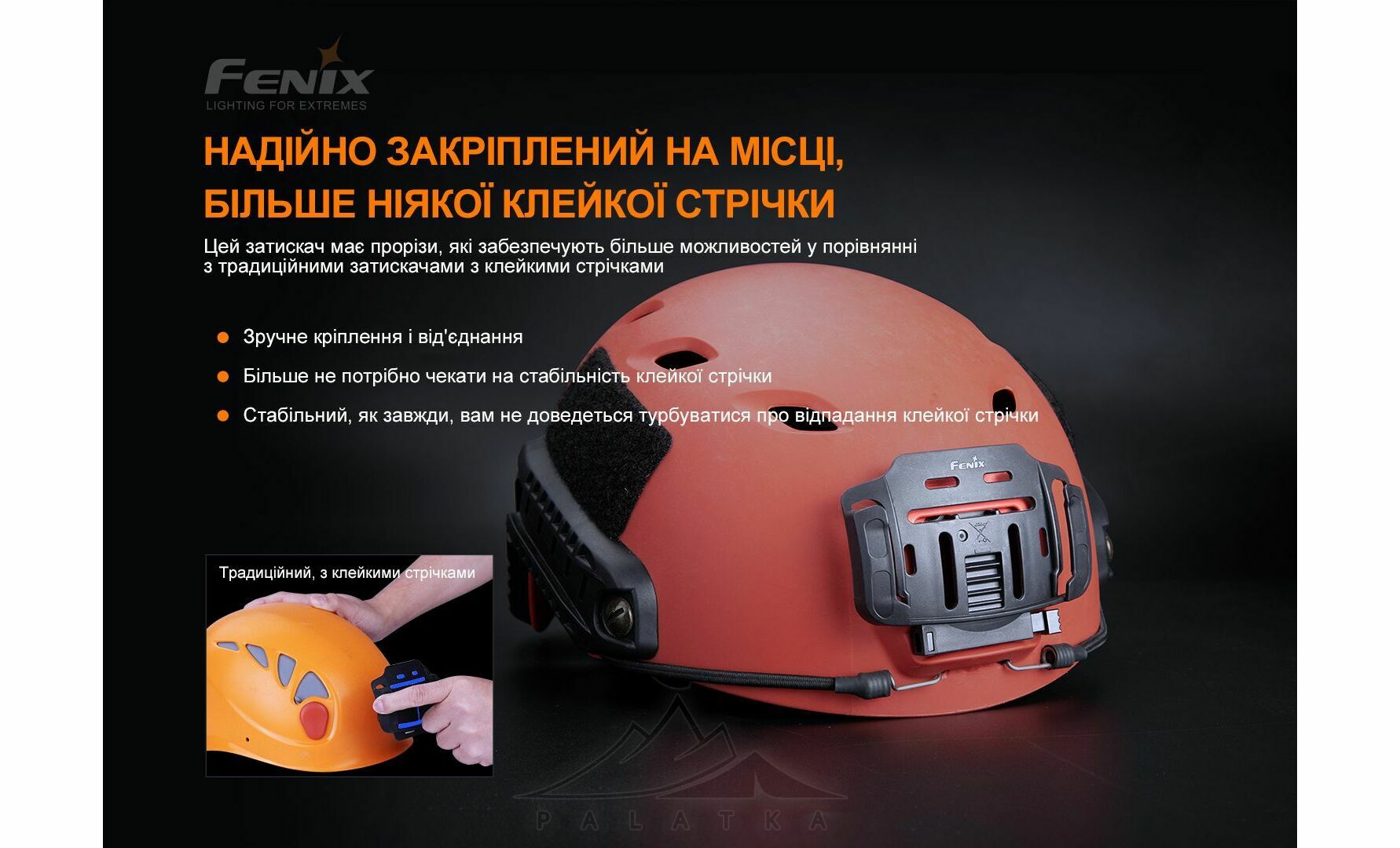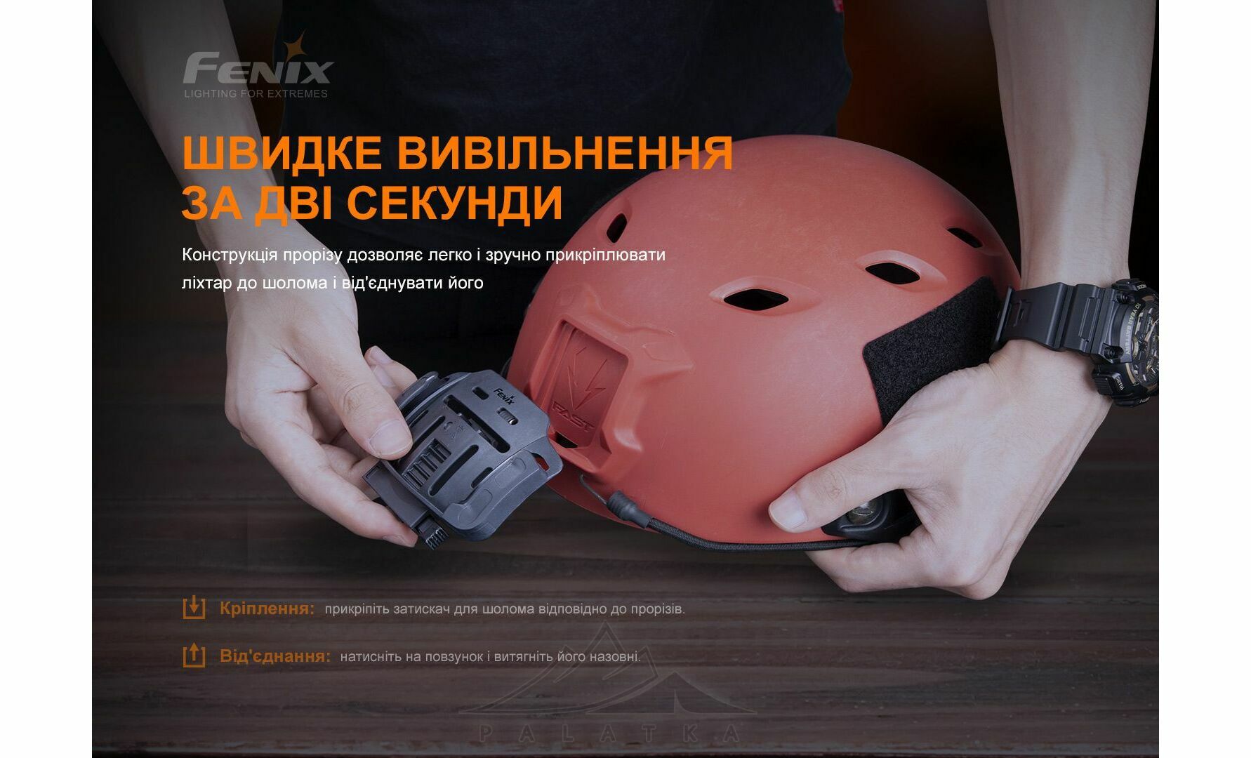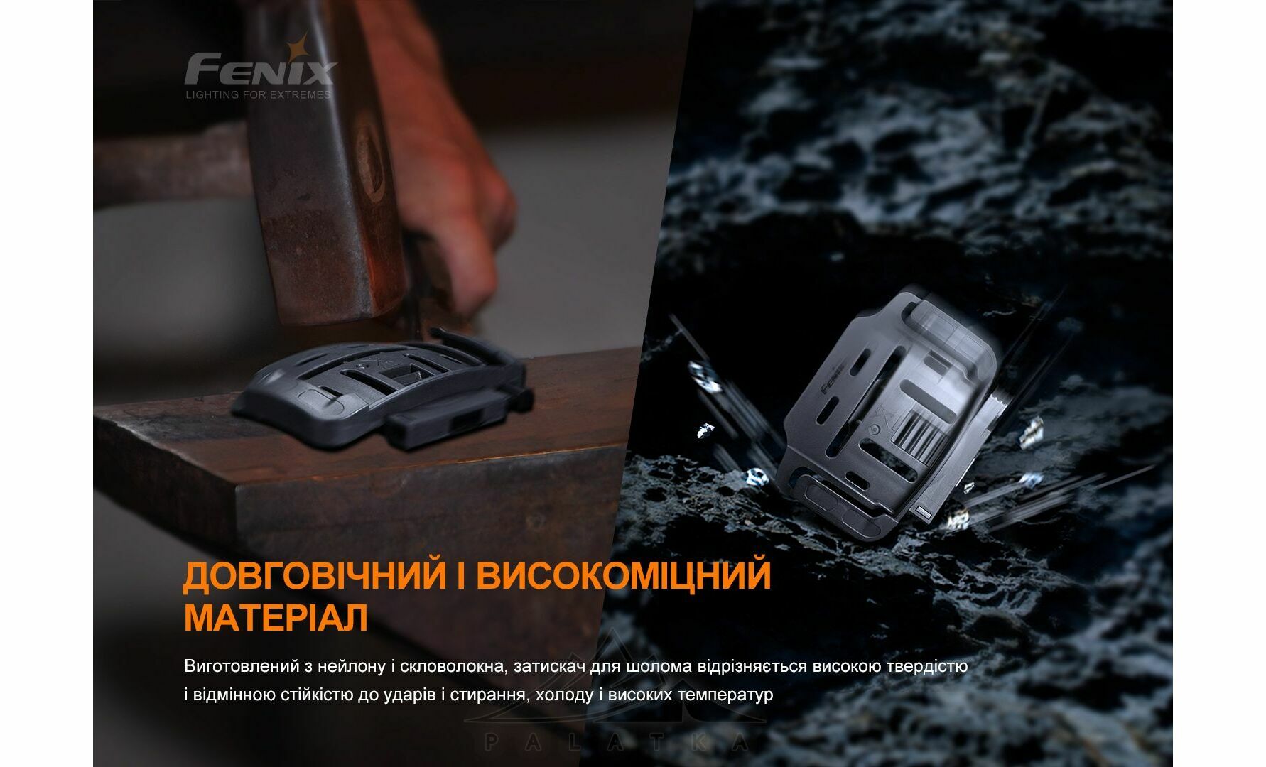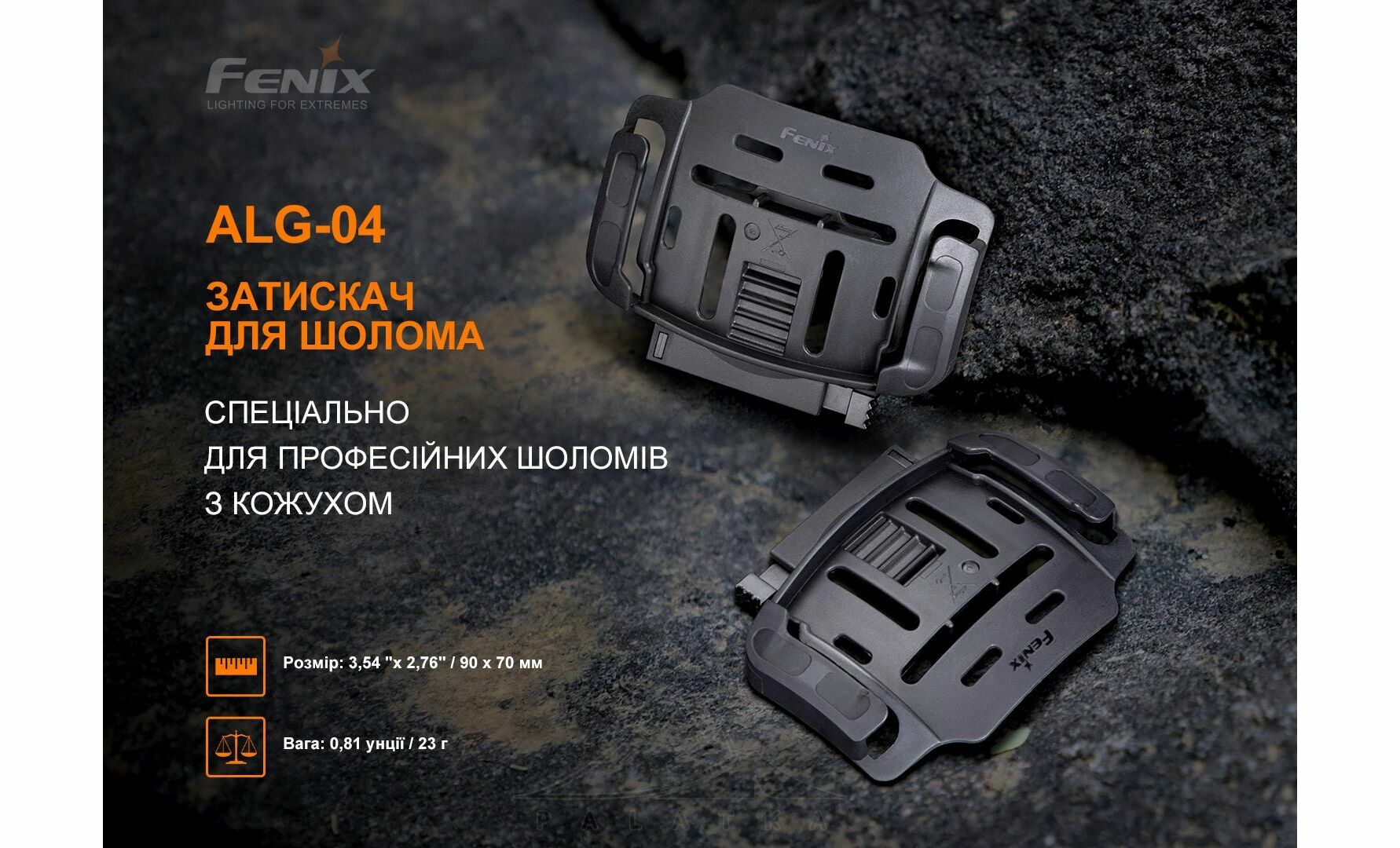 Fenix ALG-04 — кріплення для фіксації налобного ліхтаря Fenix на професійних або військових типах шоломів зі слотом для фіксації ПНБ.
