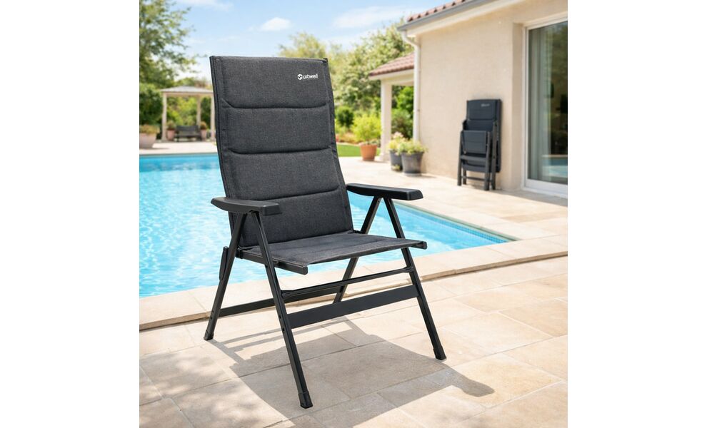 Outwell Clements — ергономічне складне крісло підвищенного комфорту з високою регульованою спинкою та надійним алюмінієвим каркасом. Ідеально підходить для кемпінгу та відпочинку на природі.