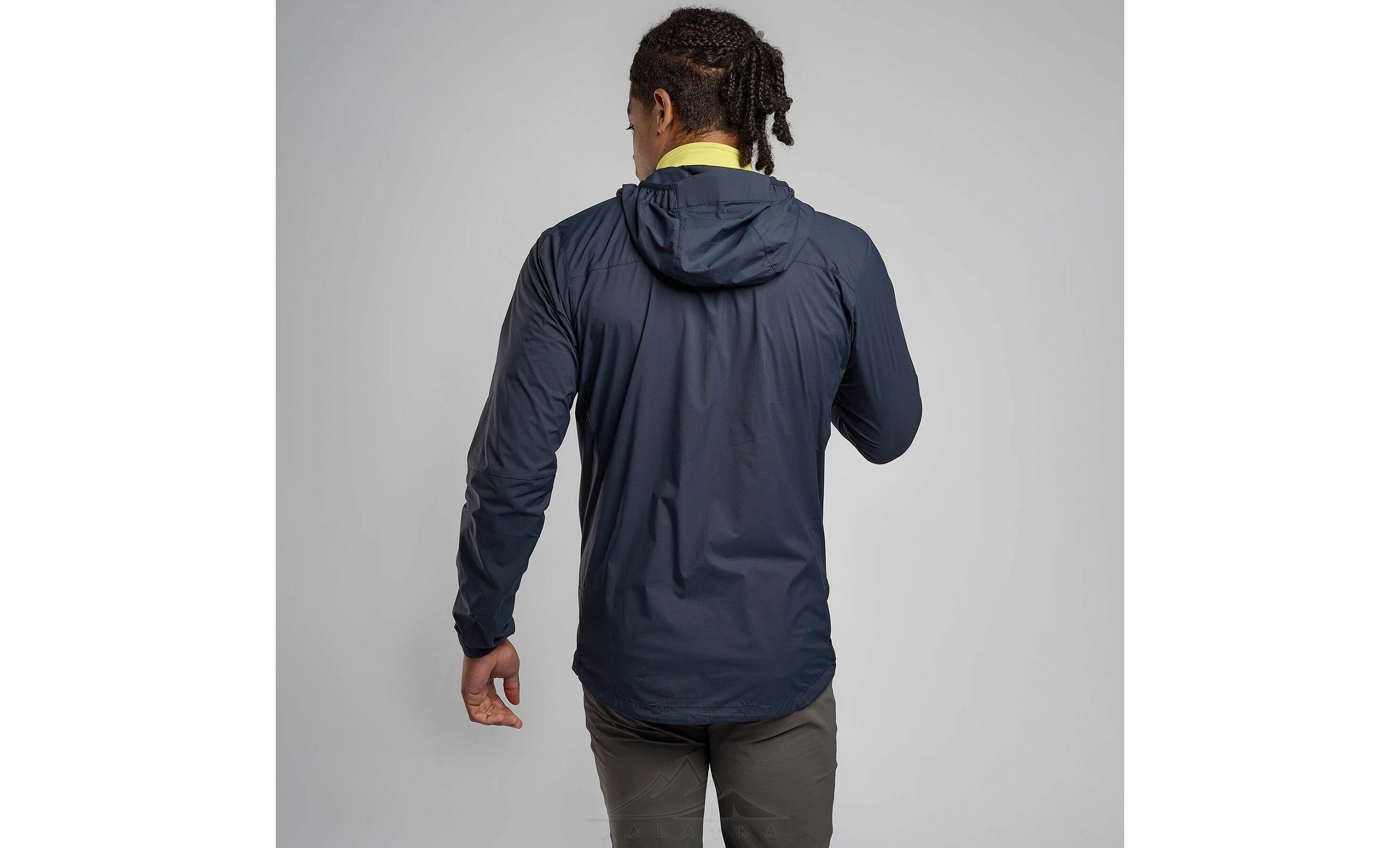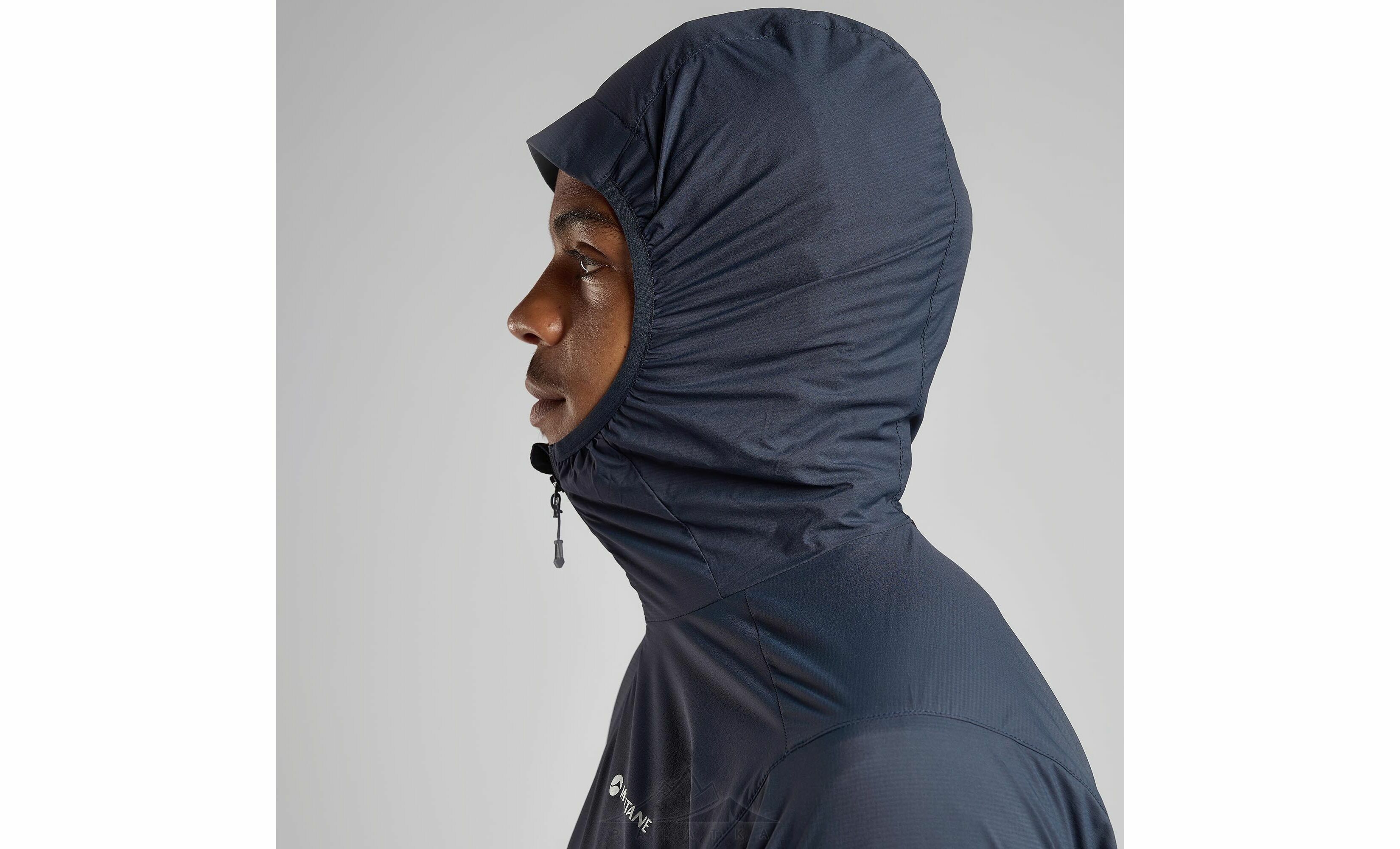 - Облягаючий капюшон розроблений для носіння під альпіністським шоломом — він щільно прилягає до голови, не заважає рухам і забезпечує додатковий захист від вітру.
